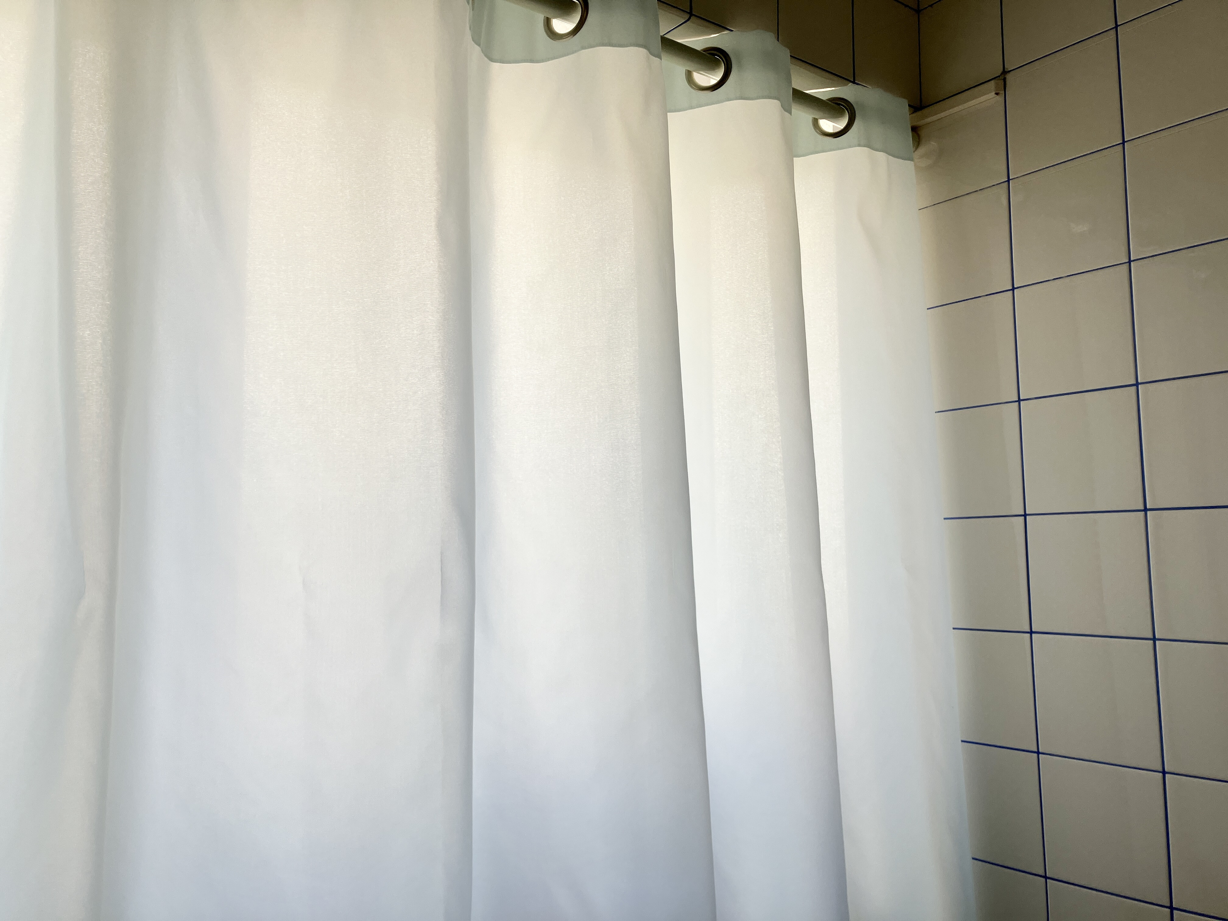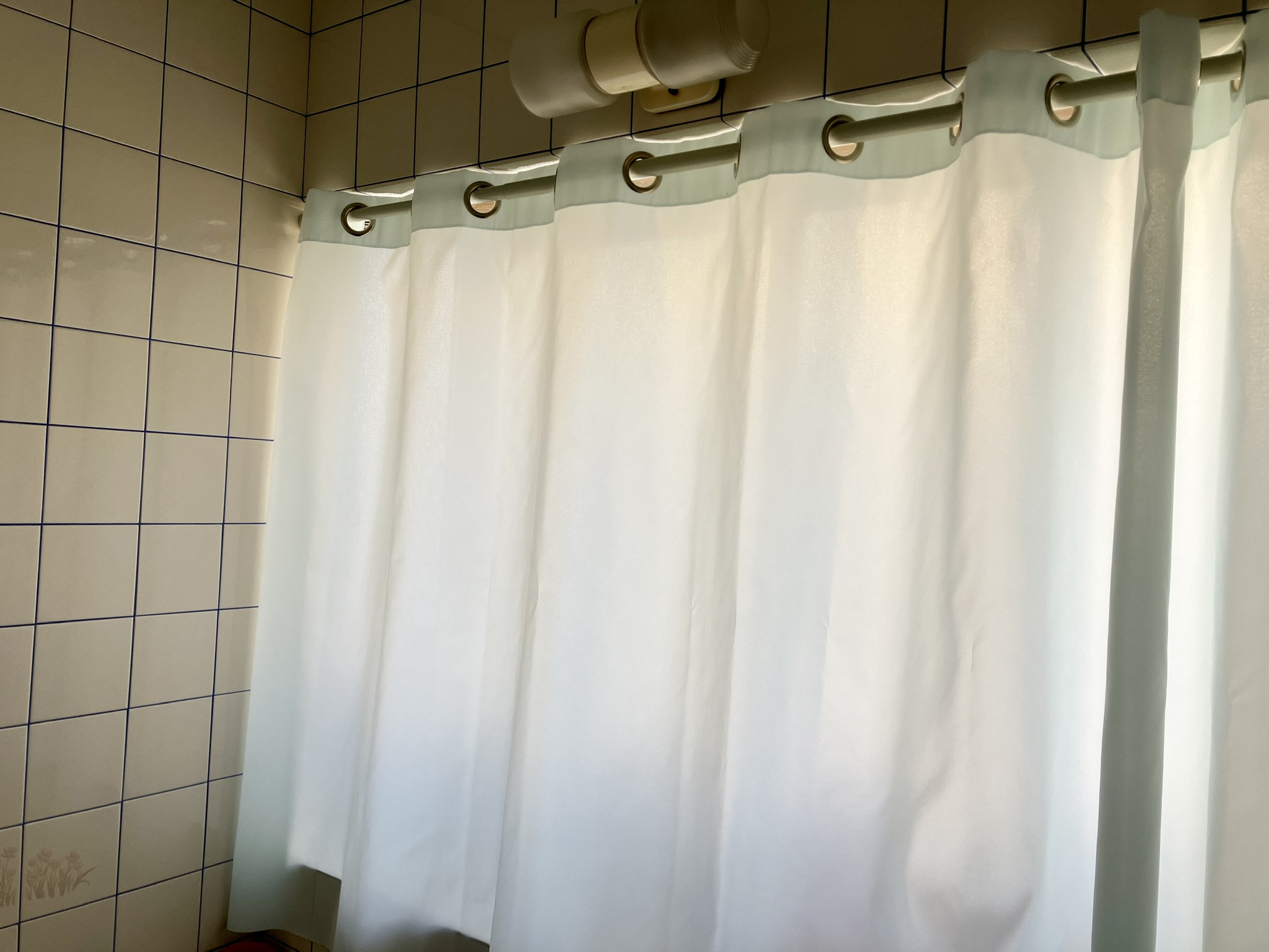 襖張替えでお世話になったお客様、お風呂場にシャワーカーテンを納品です。