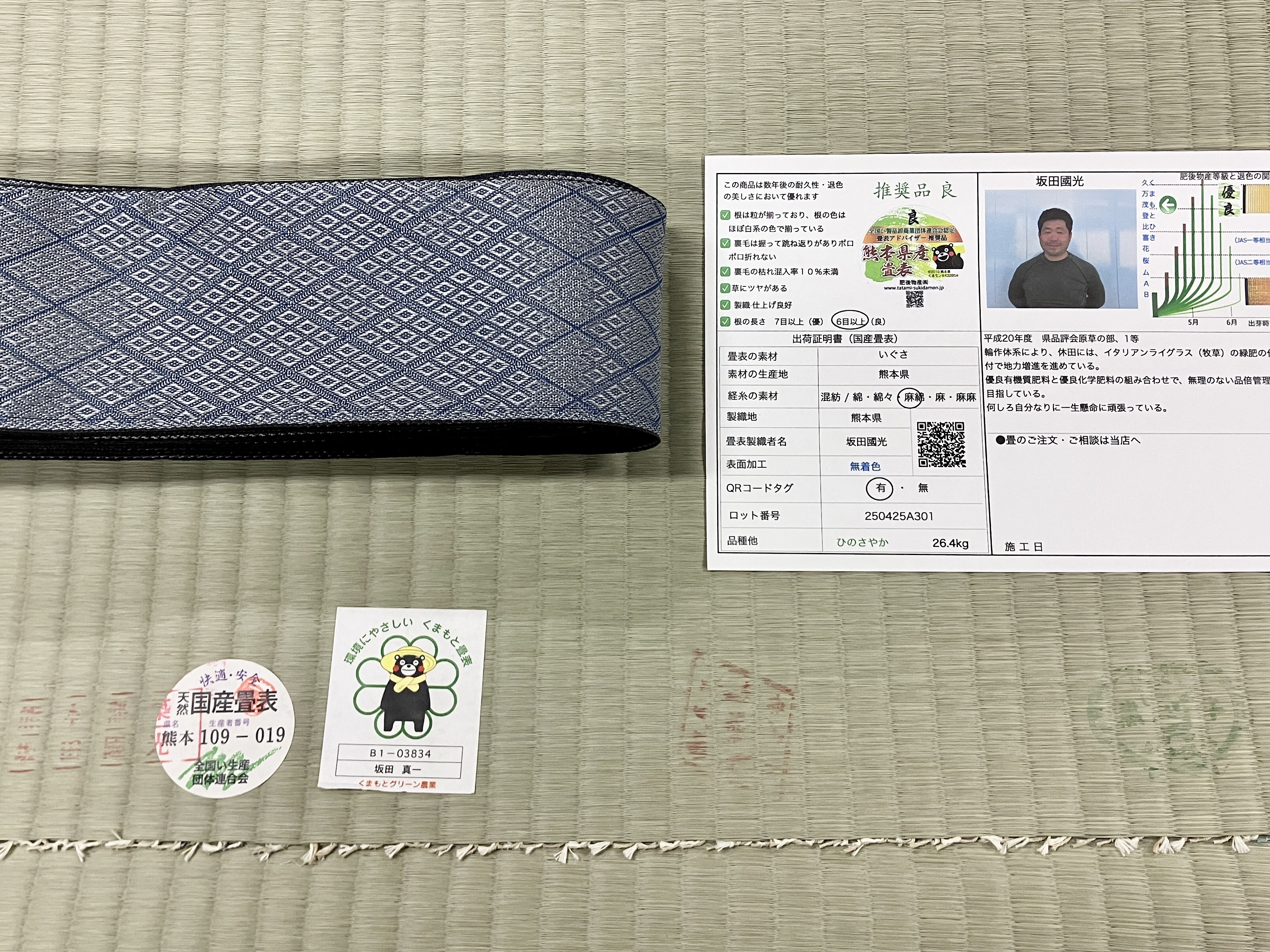 住宅がメーターモジュールのため、普通より大きいサイズの畳です。メーターモジュールに使用する畳表は在庫を抱えてませんが、良い材料を用意できました。