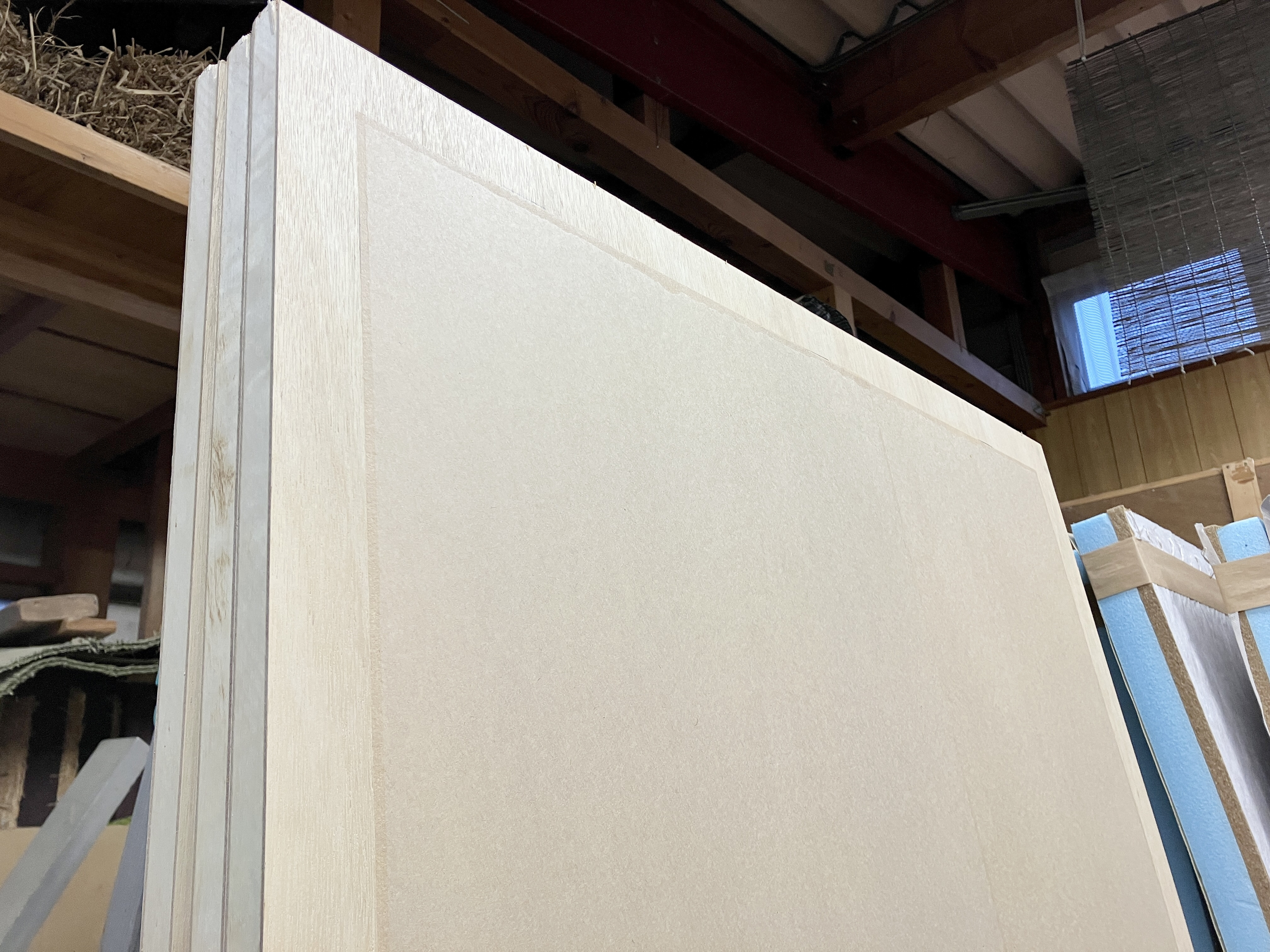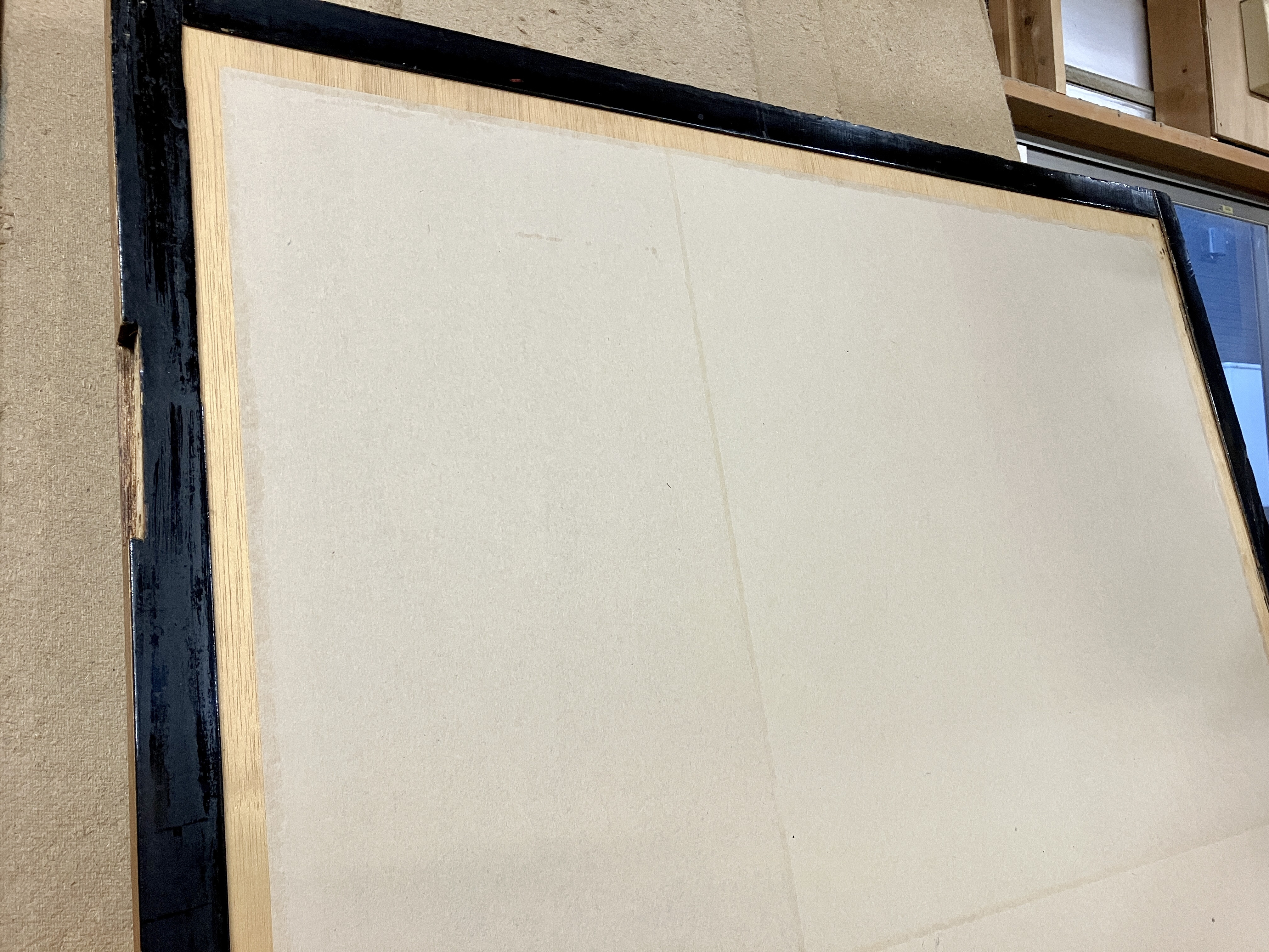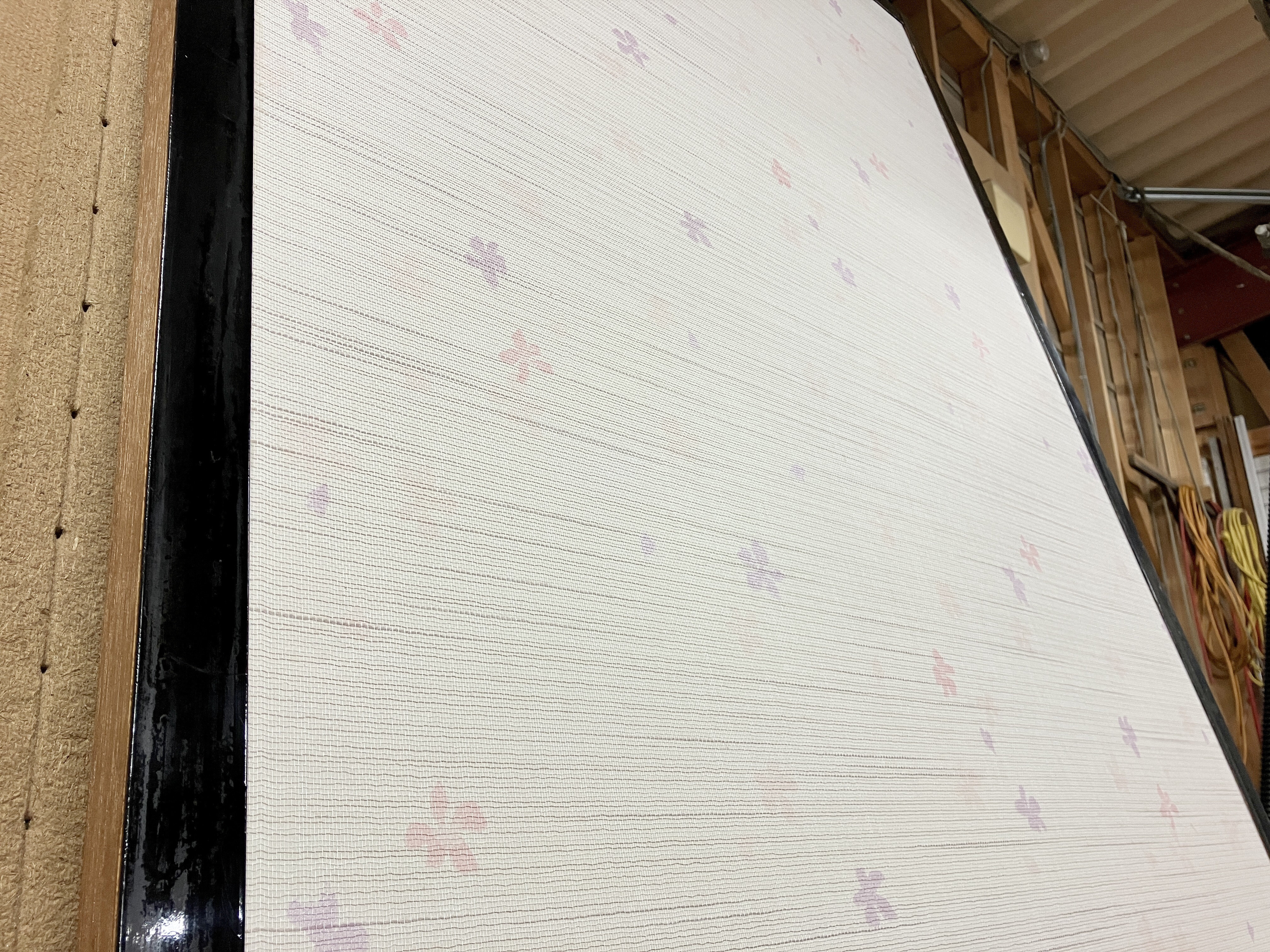 建具屋さんから『大至急で襖を張って欲しい…』と連絡がありました。木口と黒縁がまだですが、襖張りを後回しにしちゃうと襖を乾かす時間が無いらしいです。こういうやり方は初めてですが…下張りをして乾かしてから上張りをしました。明日の朝、7時に取りに来るそうです。
