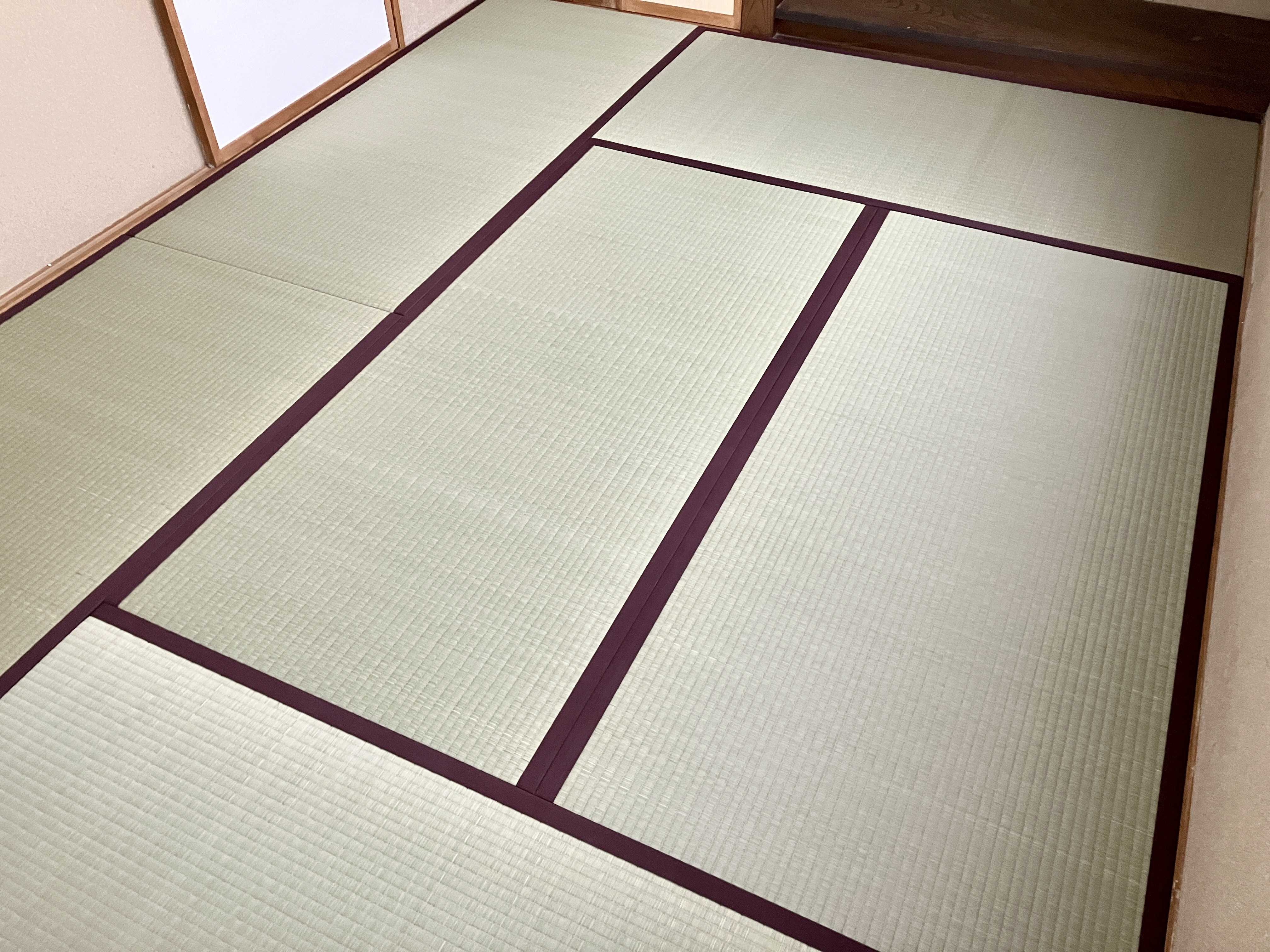洋間には薄畳の新調です。変形の部屋への納品でしたが、上手く納まりました。洋間のイメージが変わって、くつろげるお部屋になりますね。