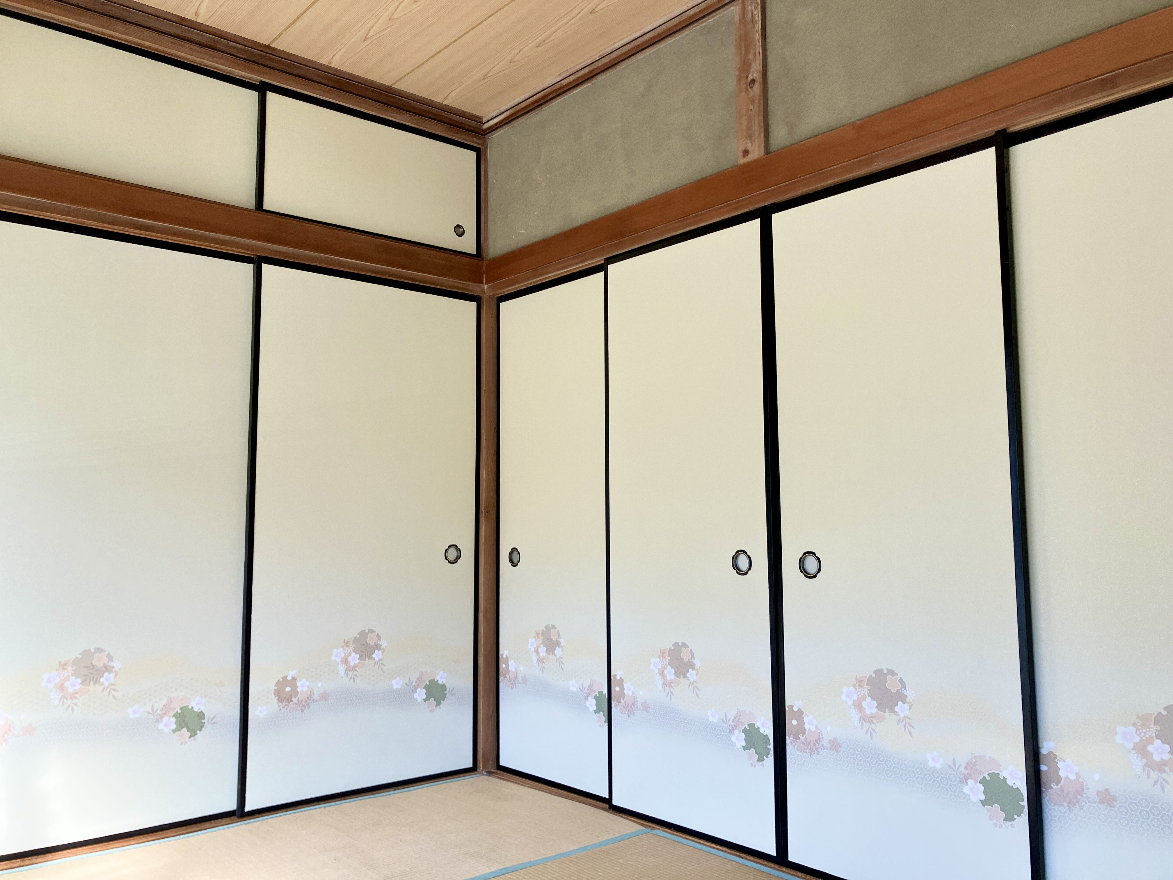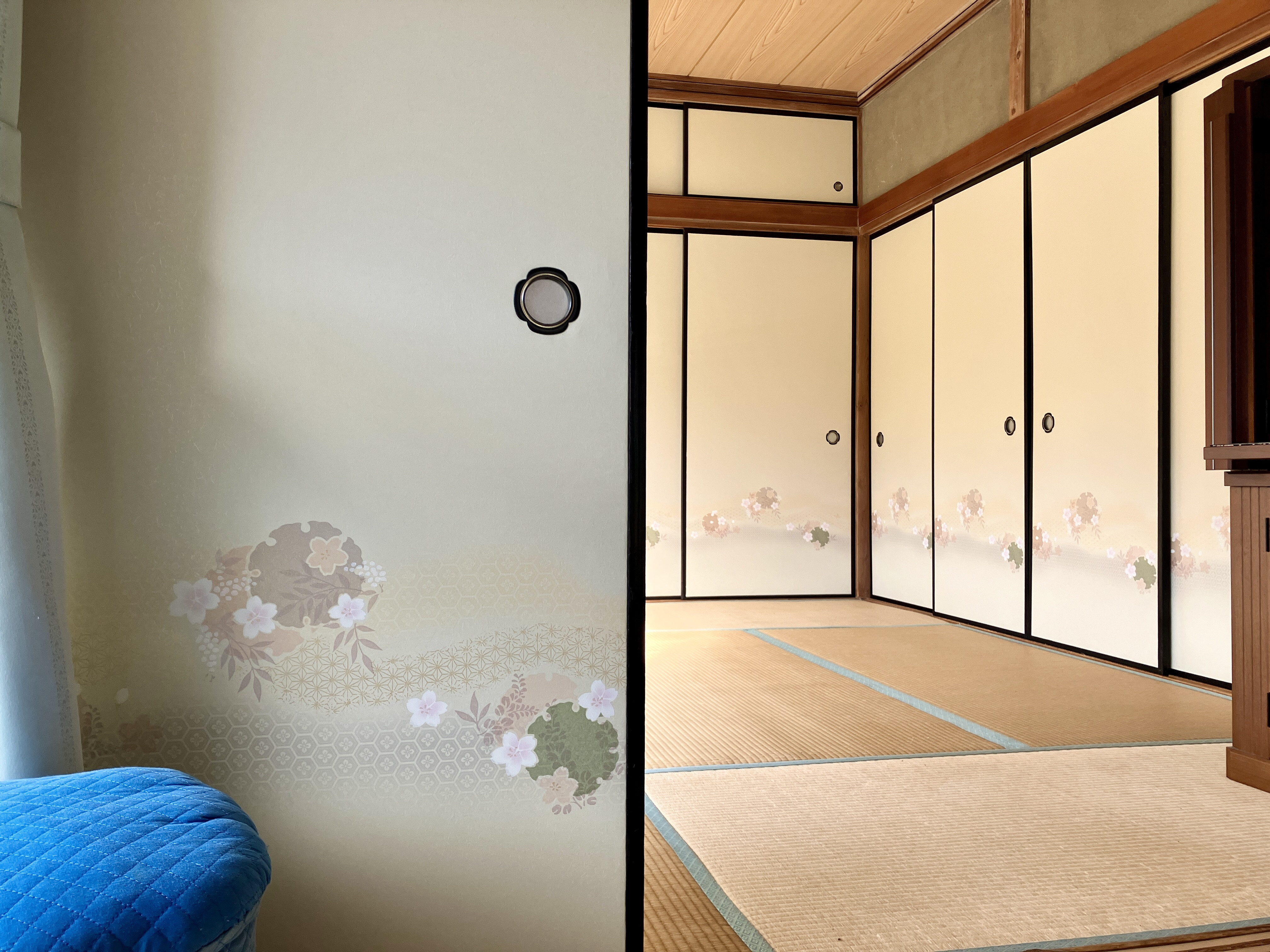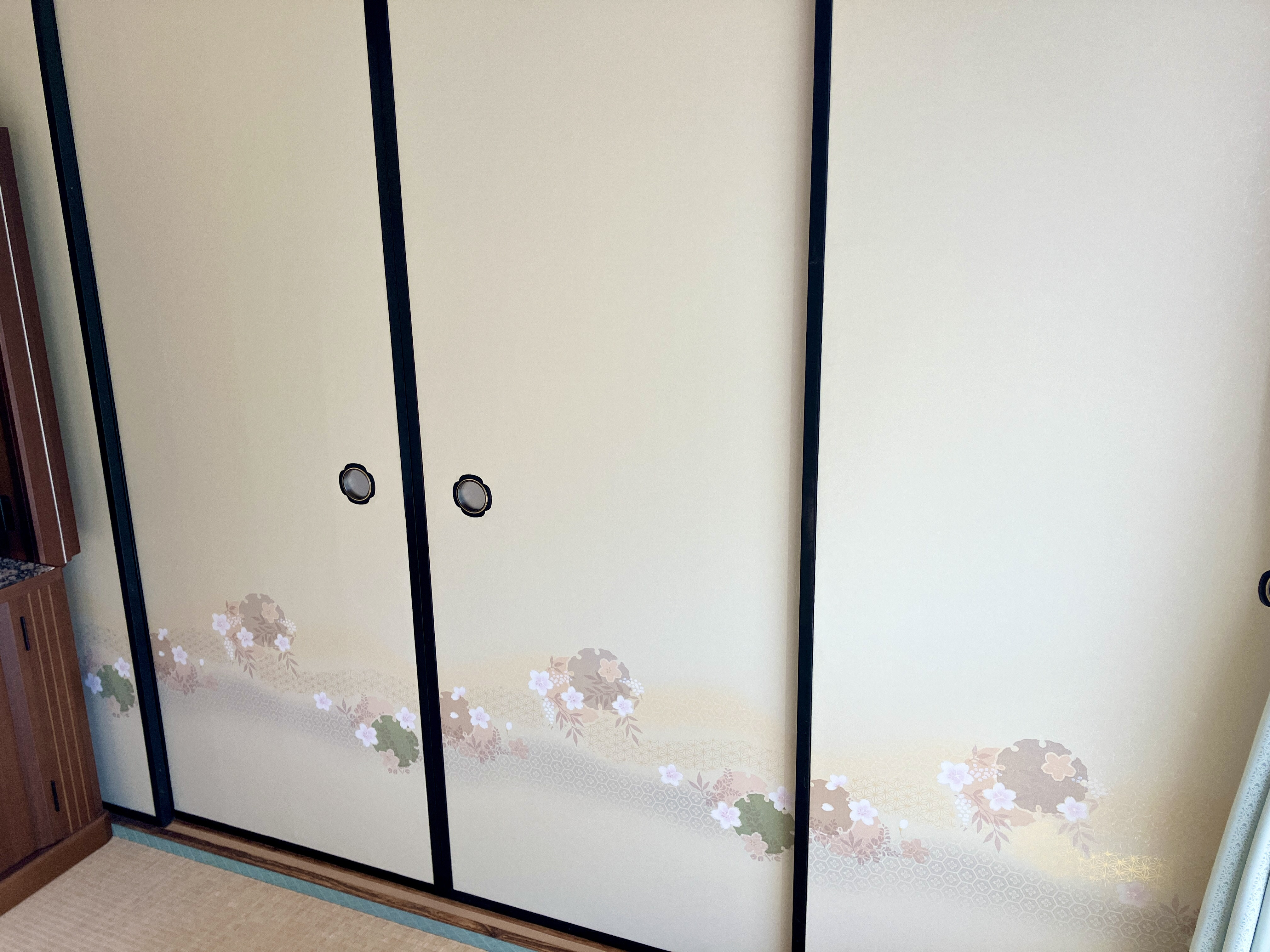 打ち合わせ時に襖紙をカタログの中から、悩みに悩んでこちらを選んでいただきました。仕上げて納品すると、色柄を気に入ってもらえたようで良かったです。