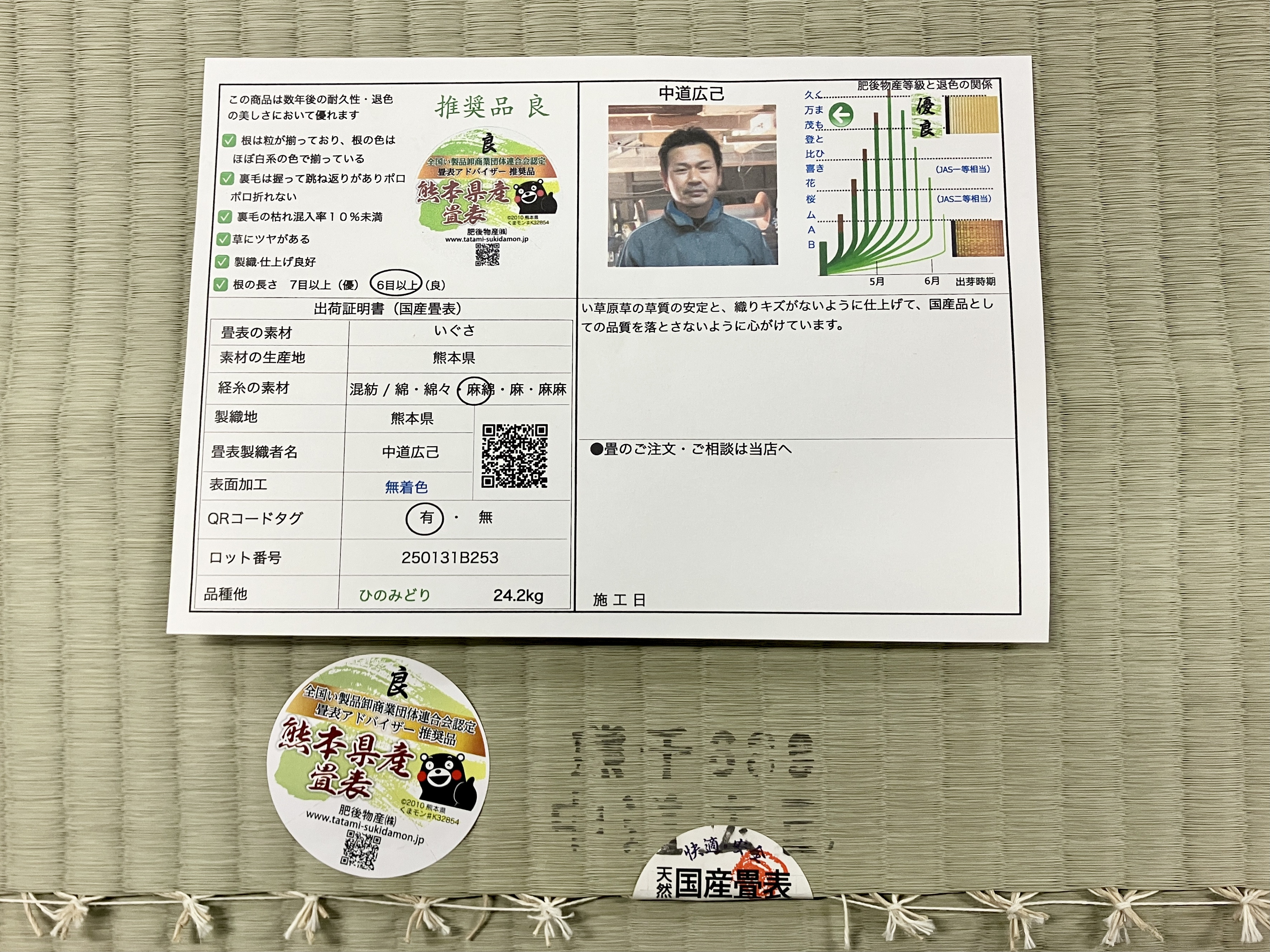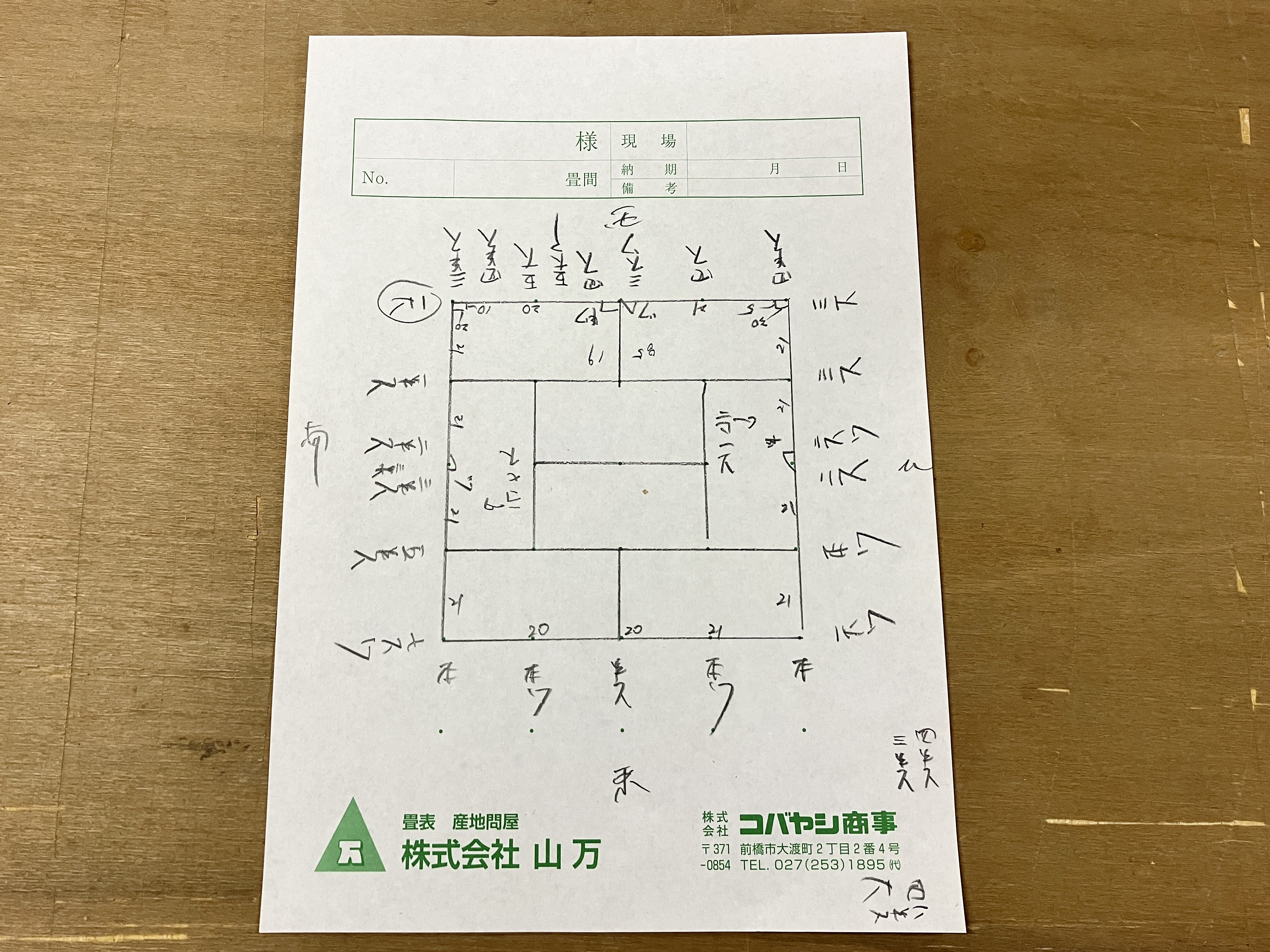 桐生市東のお客様から、6畳の表替えのご依頼です。和紙表が使用されていた畳でしたが、ワラ床なので天然い草をおススメしました。