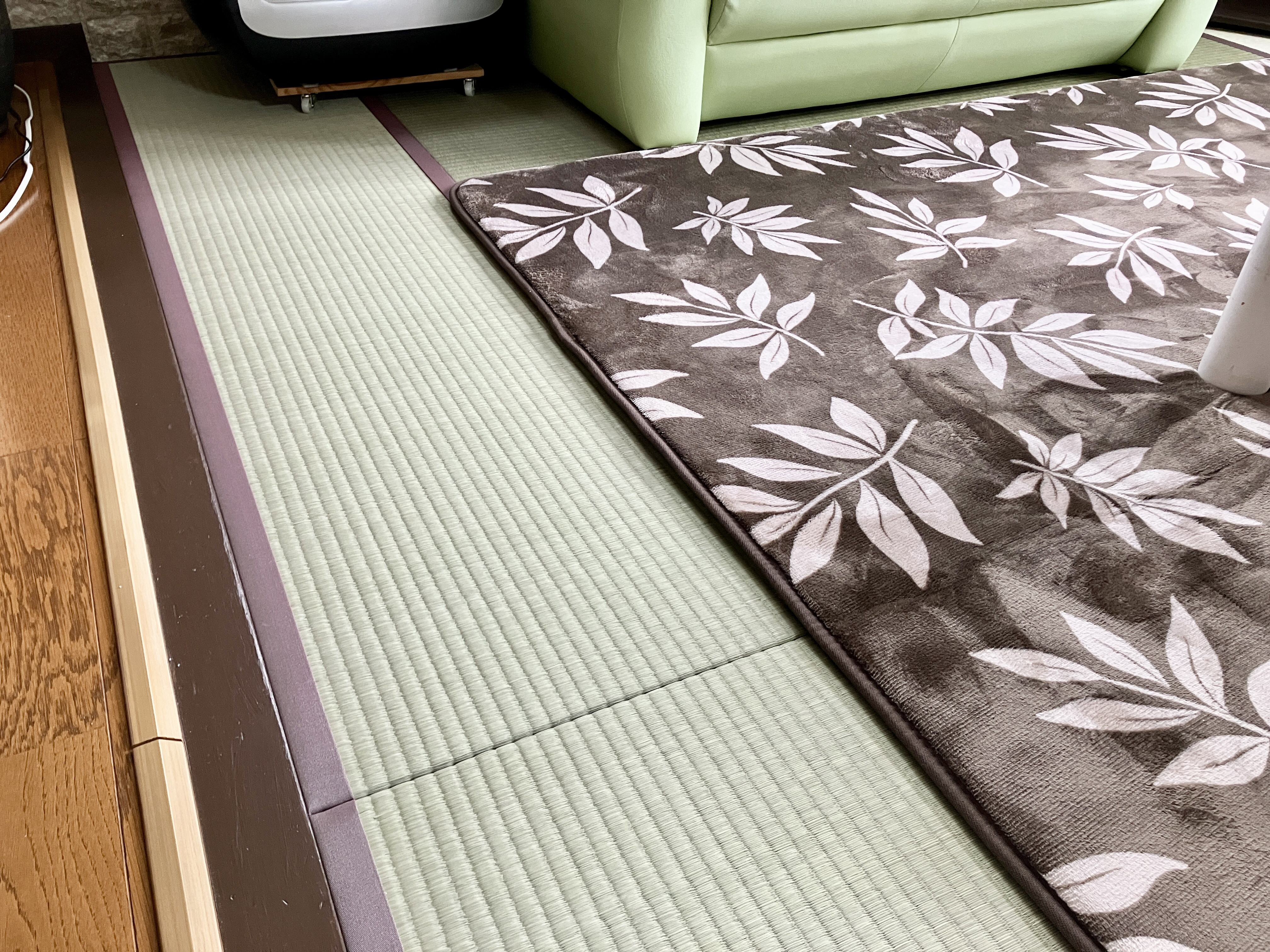 建築会社から掘コタツの部分の畳を1畳作ってほしい…との事で、現場に行き採寸して新畳を製作しました。同じ縁が無いので、同色の縁を着けました。明日納品します。
