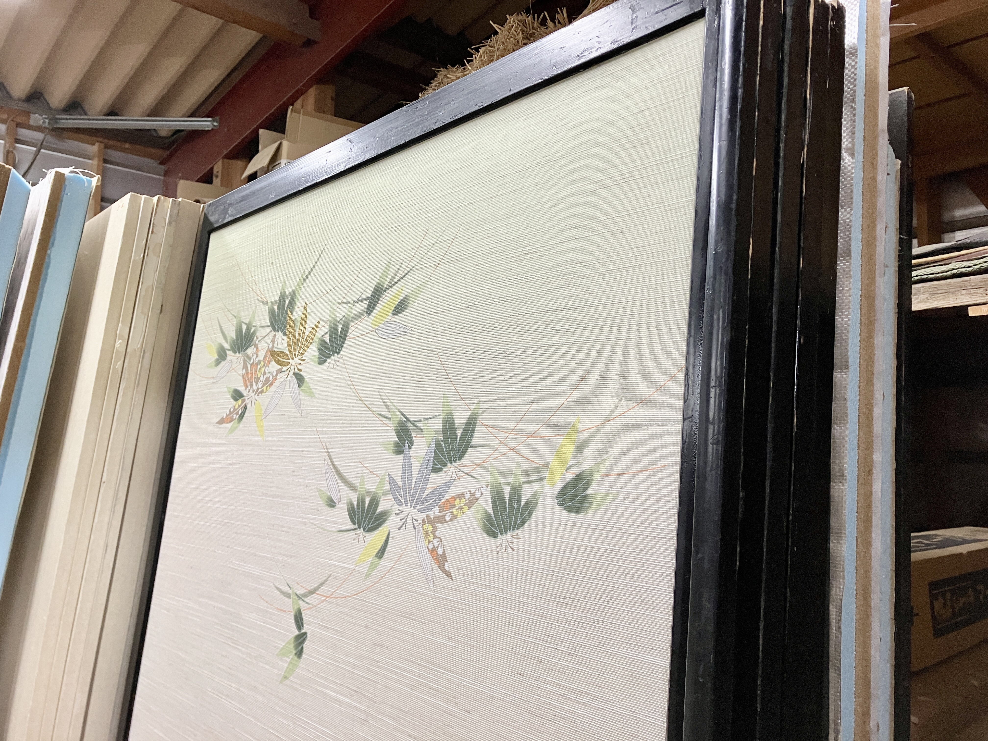 桐生市川内町のお客さまからお預かりしている、襖の上張りです。襖紙は「しんせんNo.12」で、中仕切り4本と押入れ2本の10面です。