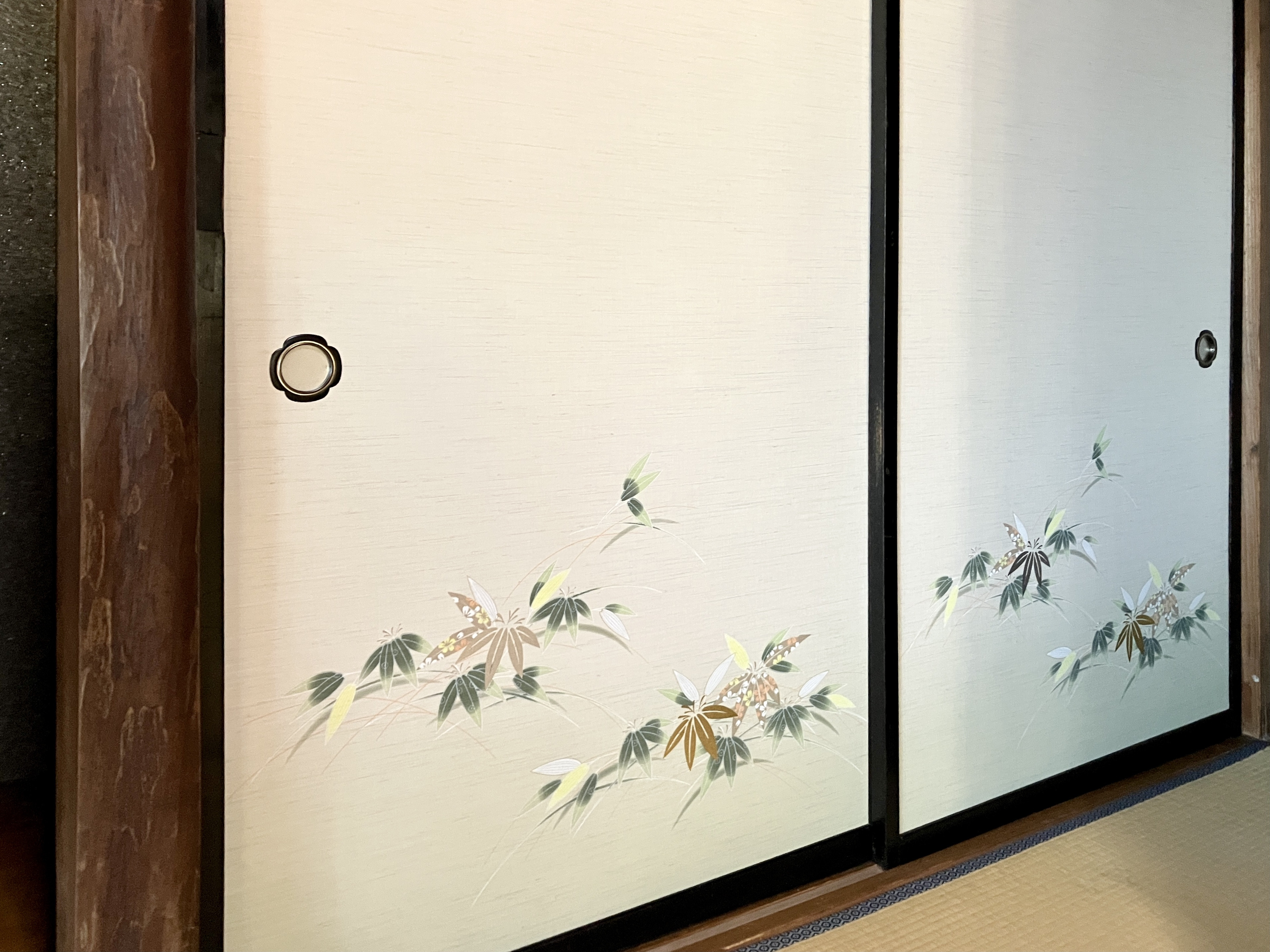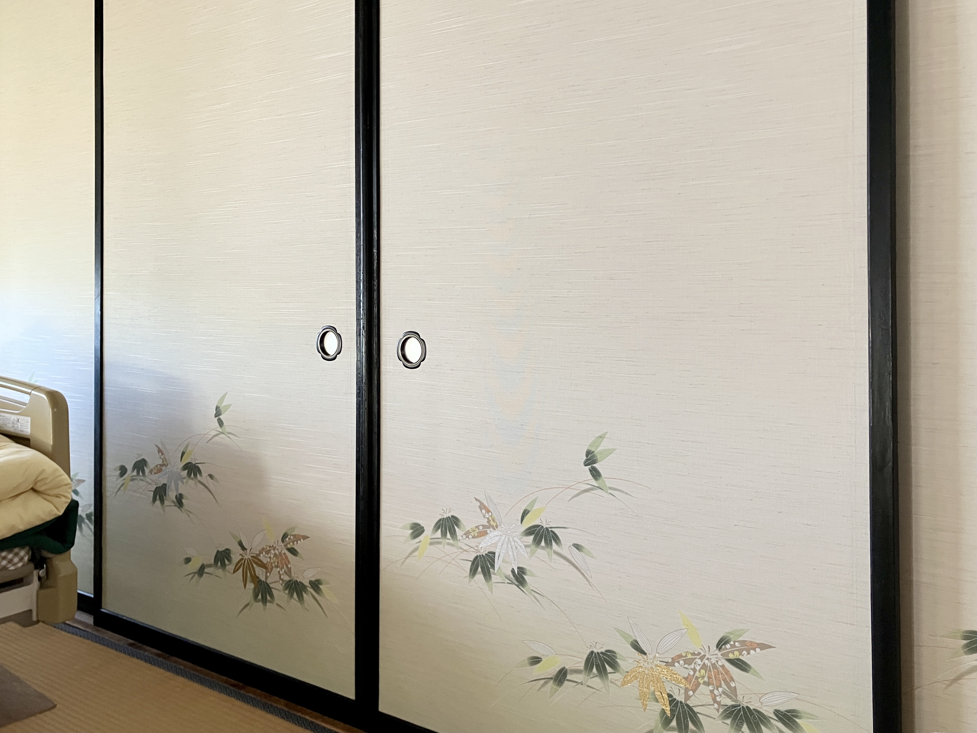 襖紙は織物糸入りの「しんせん」から、お選びいただきました。優しい色合いで、お部屋が明るくなりました。