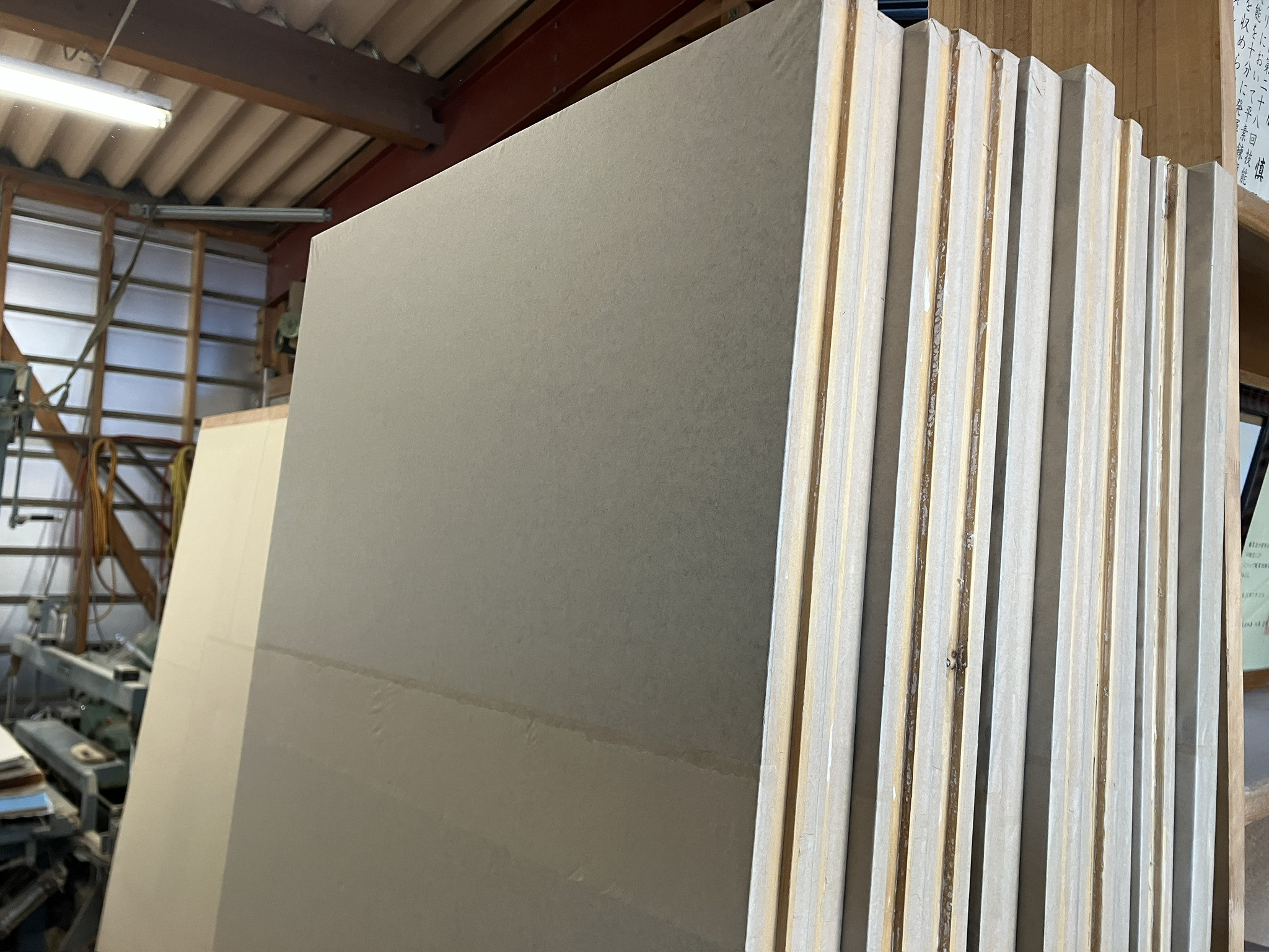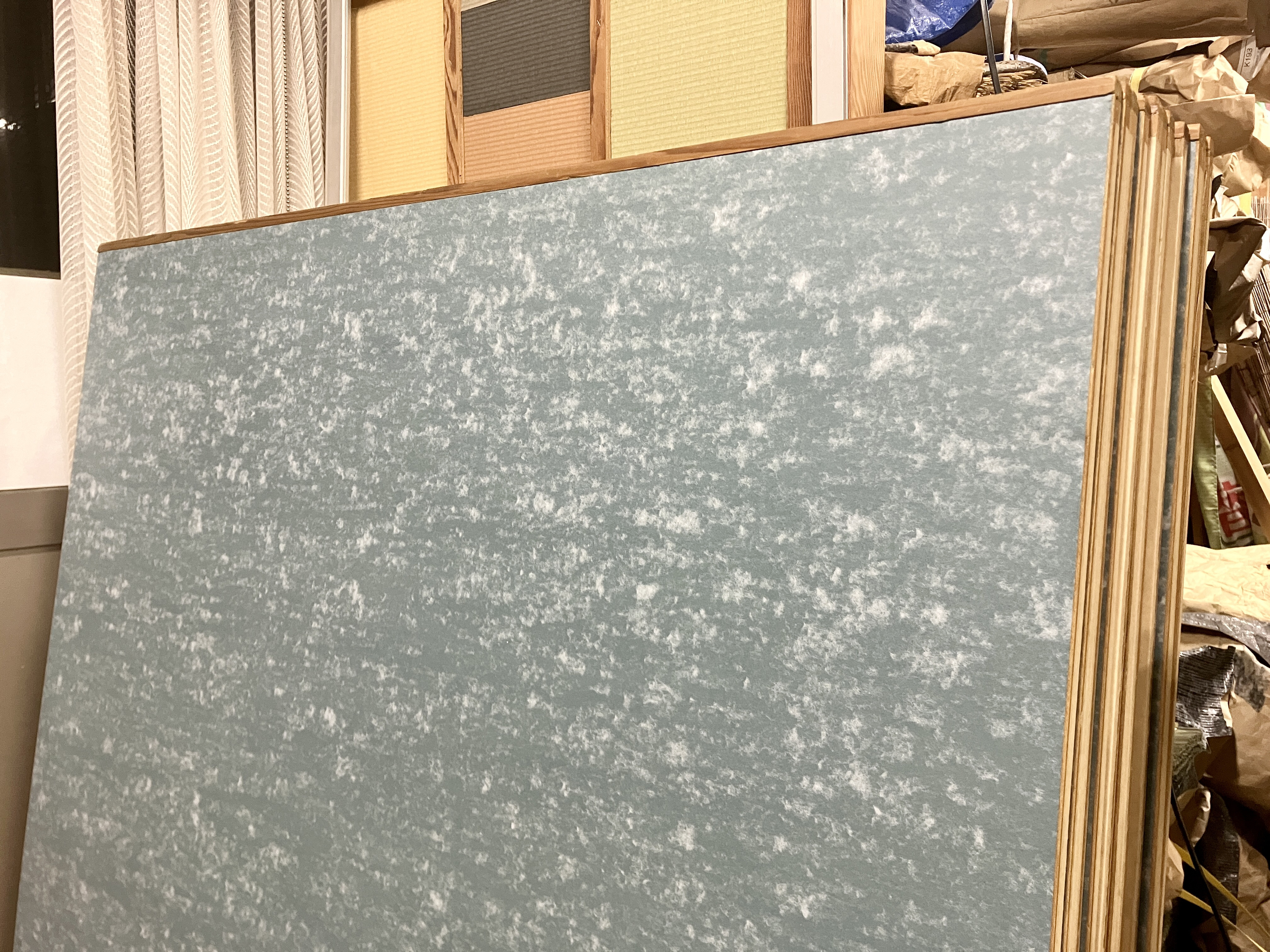 なんとか、全部の下張りを終えました。建具40本の両面に延々と下張りするのは、さすがに飽きてきますが…仕上がりの良さを優先して、手抜きはしません。
