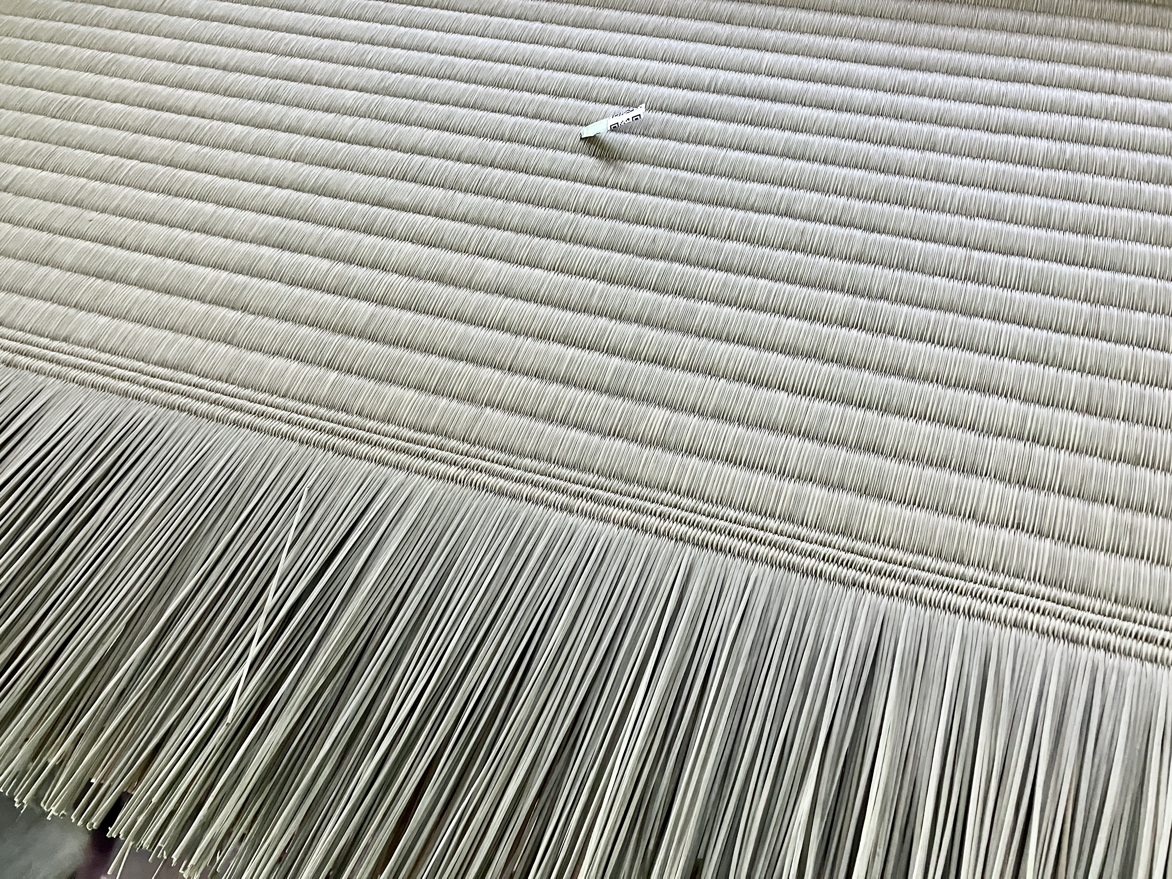 使用する材料は『熊本JAブランド畳表ひのさくら』です。選別された長いい草を使い、畳表の端から端まで均一な色合いで艶があります。い草の打ち込み本数もとても多く、耐久性に優れています。畳縁は綿ポリNo.2です。