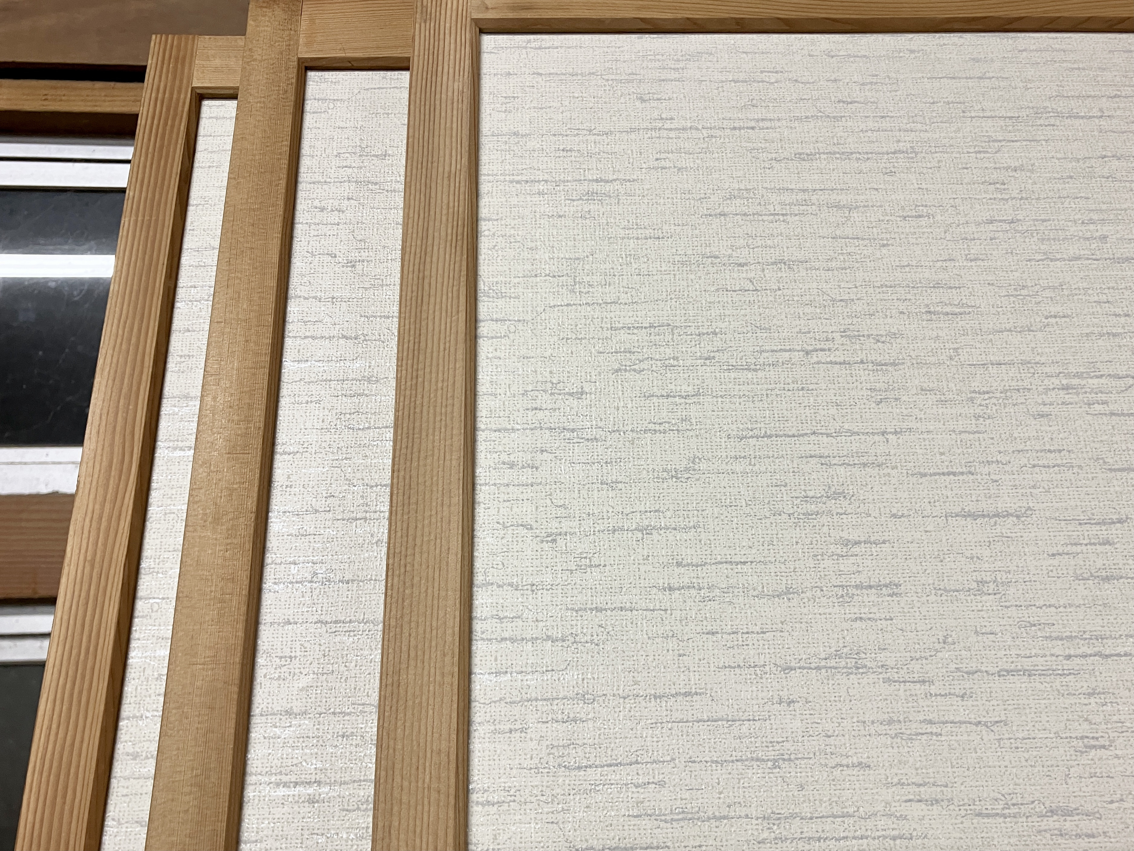 桐生市相生町のお客様からお預かりしている、襖の上張りです。新鳥の子襖紙で景勝825・3枚、821・1枚です。