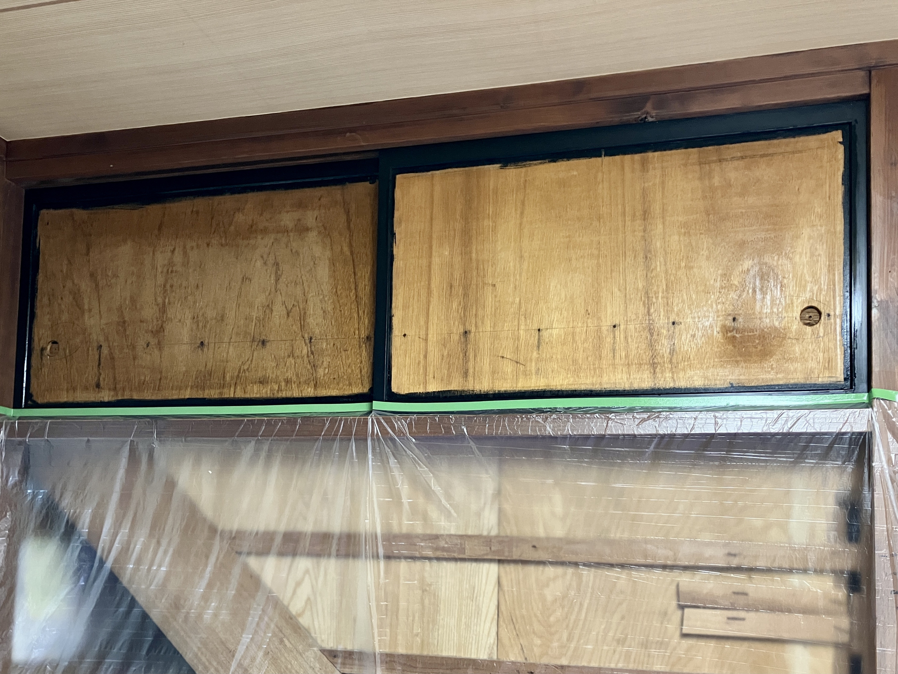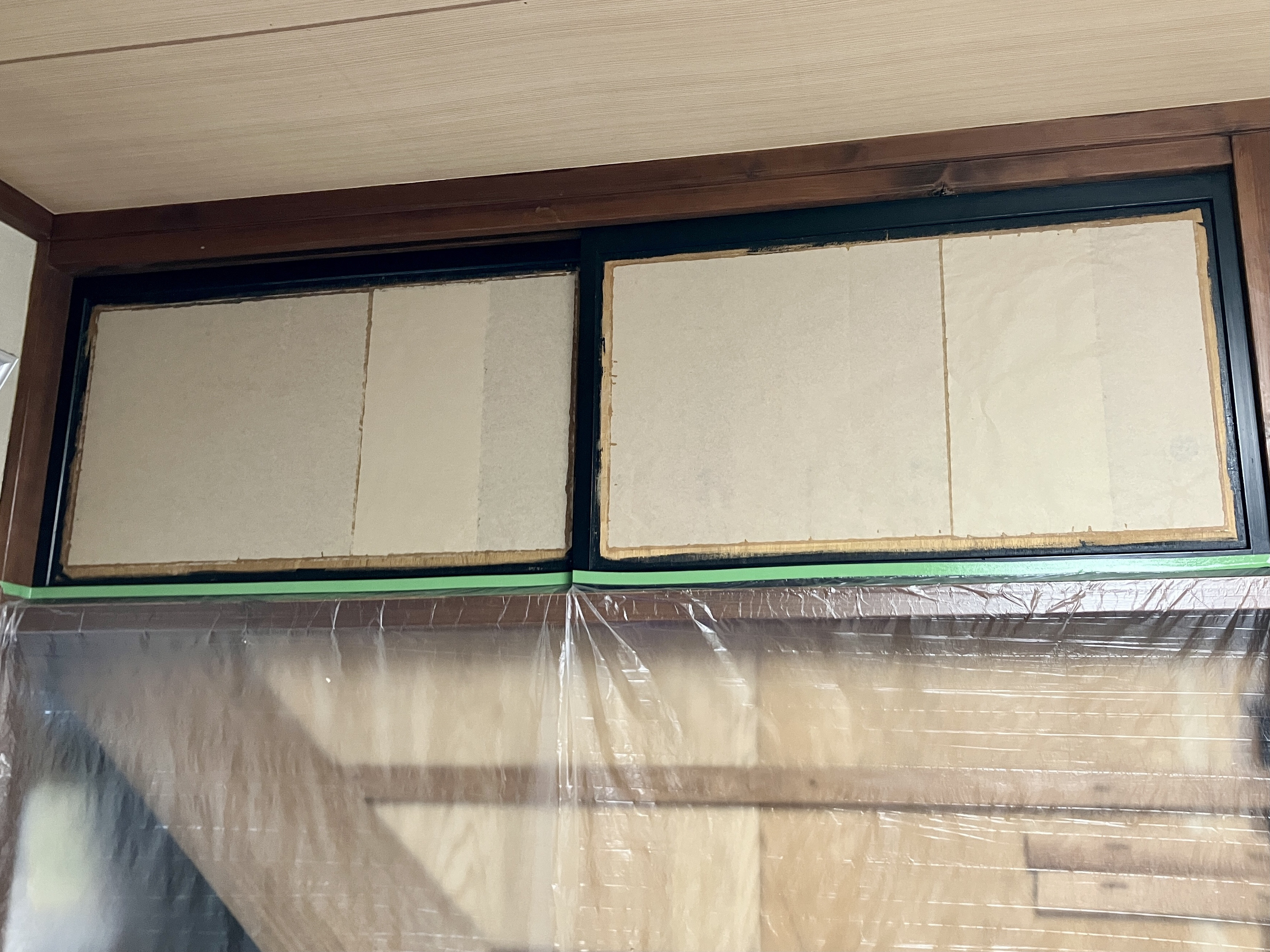 建具のベニヤ板が乾くのを待って、下張りです。