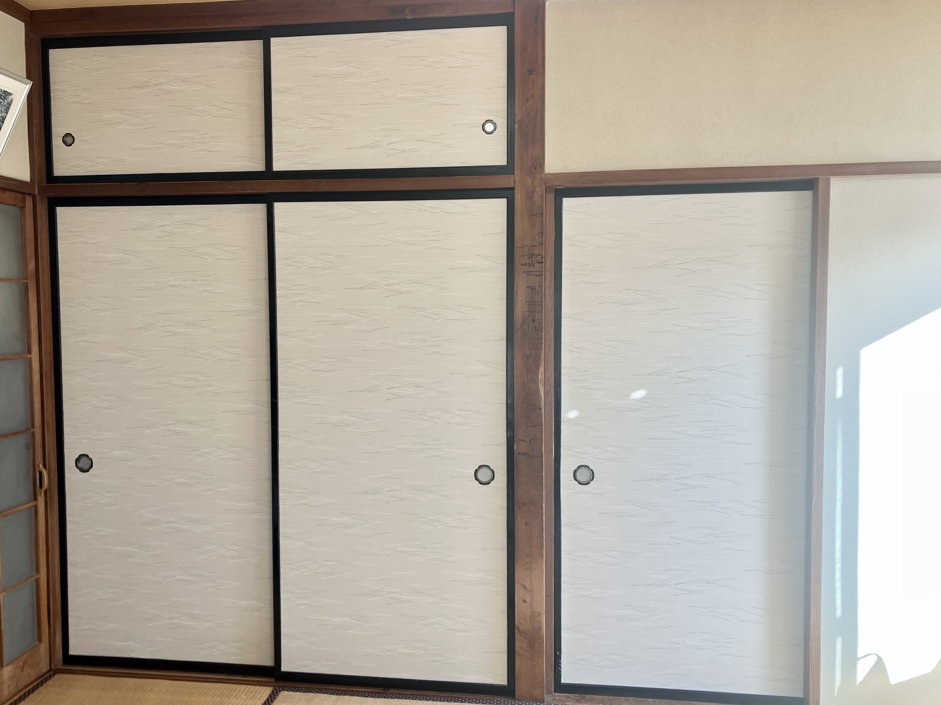襖紙が完全に乾くまでまだ時間が必要ですが、後は自然に乾きますのでこれで現場作業は終了です。
