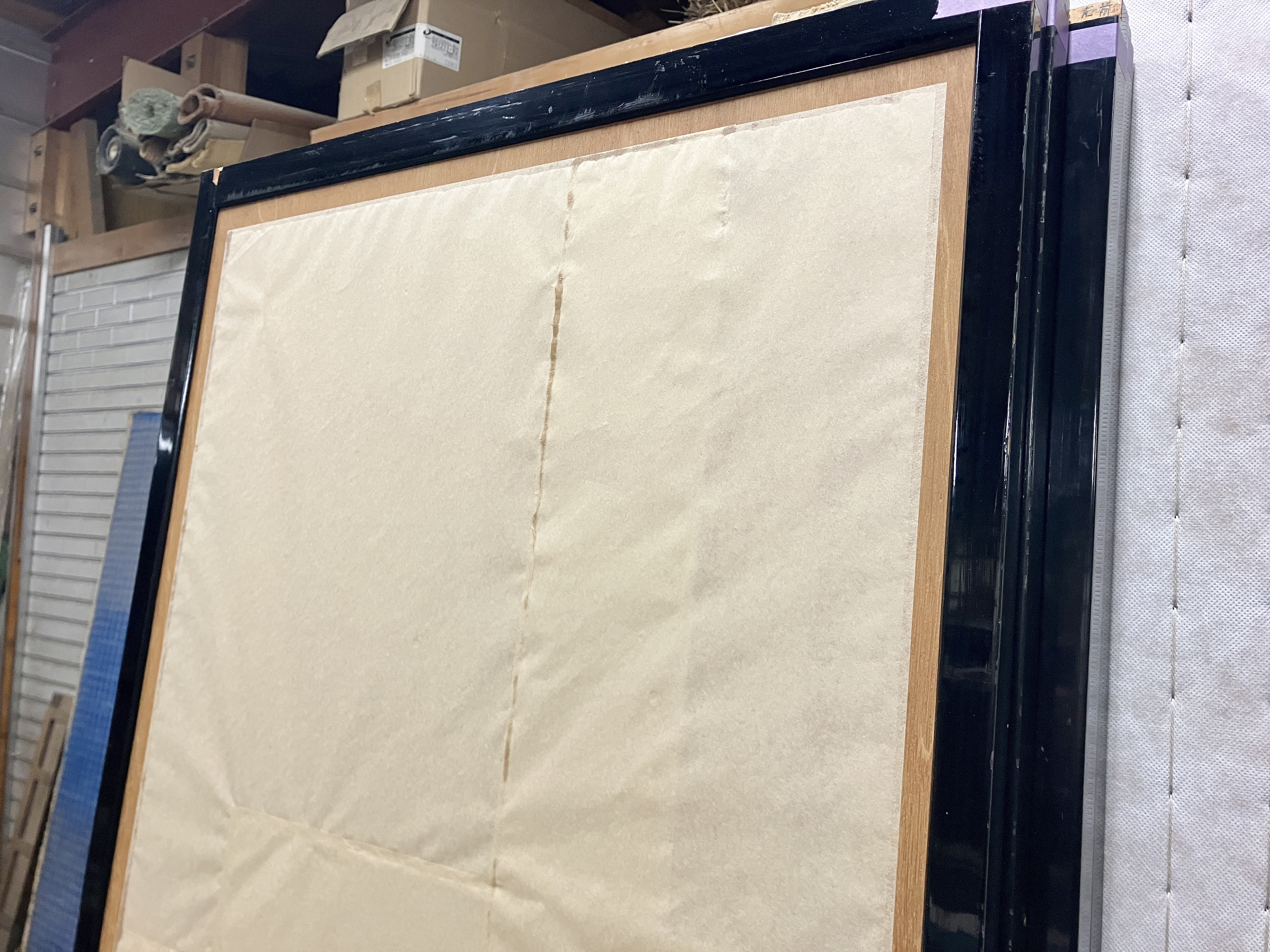 お預かりしている桐生市相生町の襖に、シーラーを塗って下張りまで済ませました。写真の下張りは、まだ乾いてません。