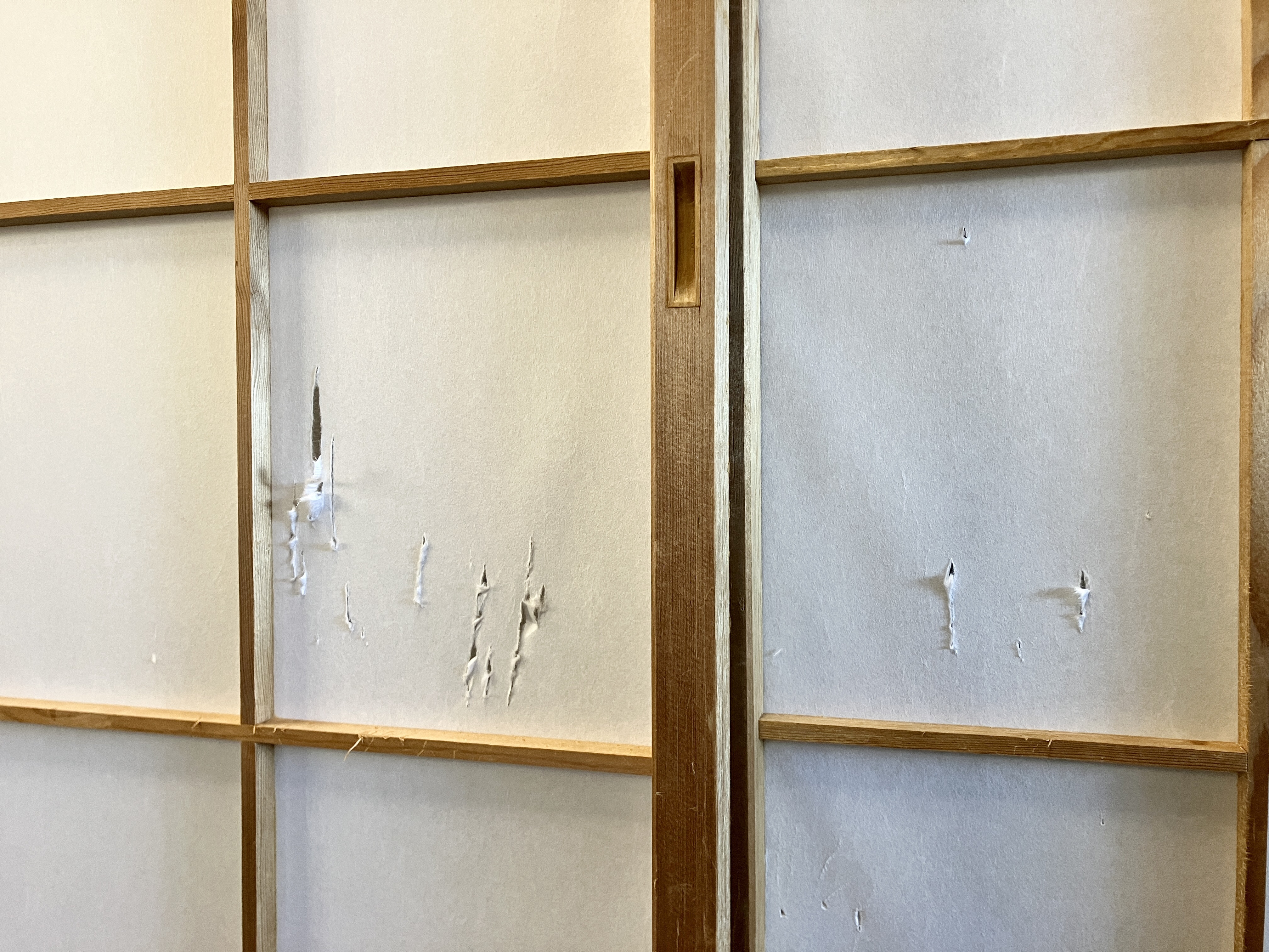 半年程前に6枚の張替えをしたのですが、猫ちゃんが爪で破いちゃった‥との事で、お正月前に改めて2枚を張替えです。