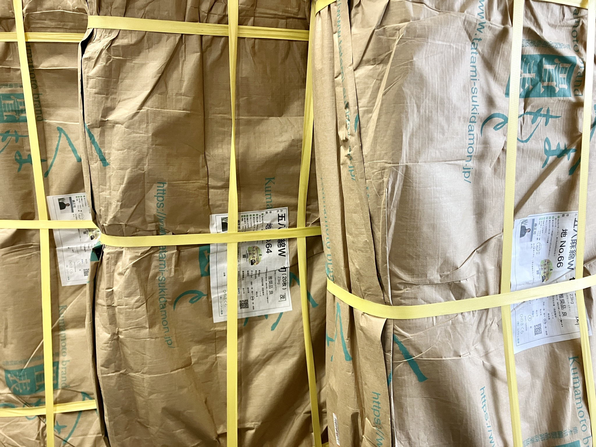 『くまもとJAブランド畳表ひのさくら』も3俵(60枚)入荷しました。良い材料が届くと、それだけで嬉しくなります。支払いは大変ですが(汗)…これからも国産畳表専門店として、良い材料を取り揃えていきます。