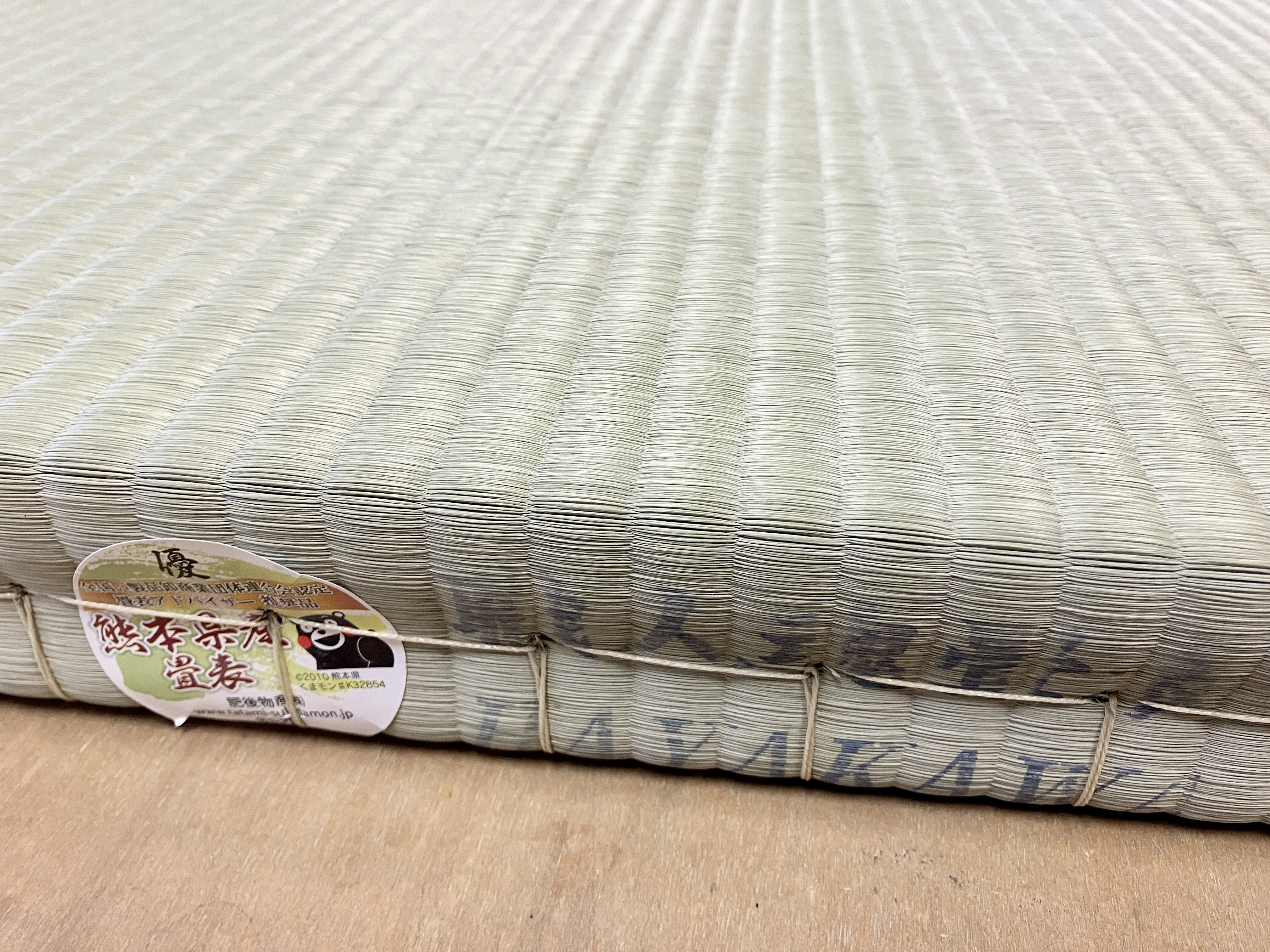 畳表は、レジェンド早川さんの『くまもとJAブランド畳表ひのさらさ』です。関東で使われるサイズの畳表としては、日本一と言っても差し支えありません。