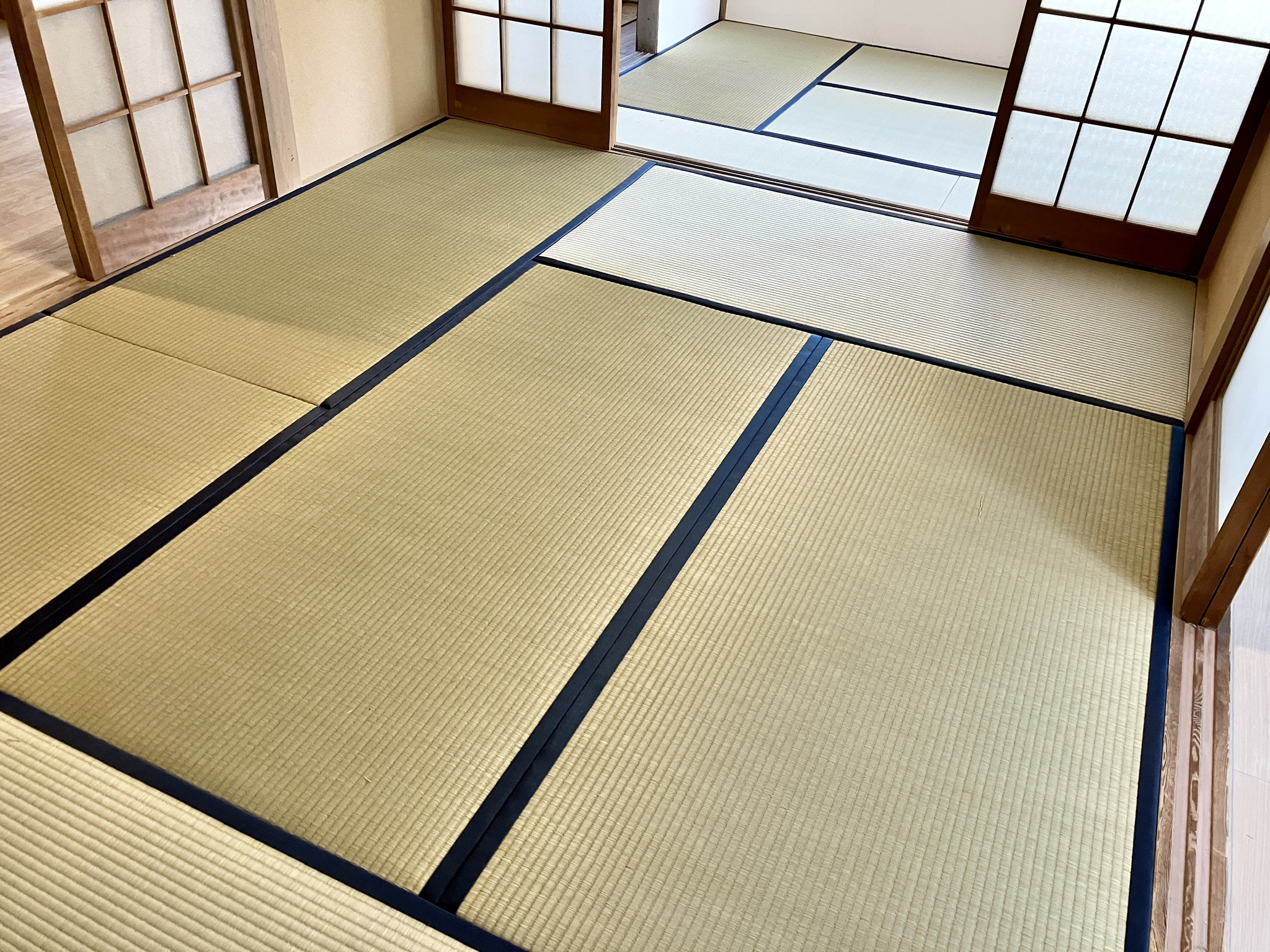 年末に仕上げ、大切に保管していた桐生市堤町の一戸建て貸家へ計24畳の畳を納品してまいりました。1階の6畳2間は『新畳』、1階と2階の各6畳は「表替え」でのリフレッシュです。