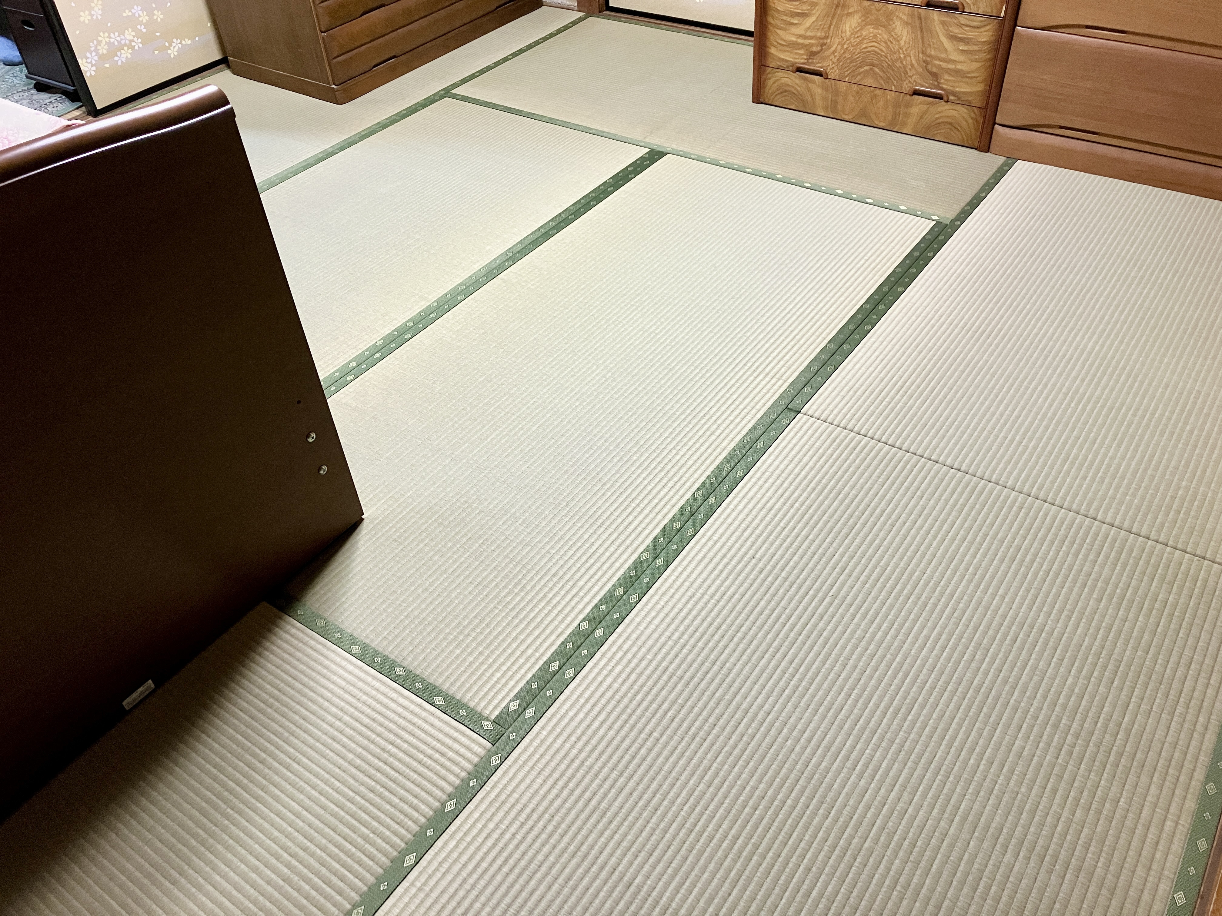 「大きなベッド、タンスが3つもあるから畳替えを頼むのも準備が大変そうで……」とお客様も心配されていましたが、そこはプロの出番です。家具の移動はこちらで丁寧に行いますのでお客様は事前の準備なしで大丈夫!今日もスムーズに作業を終えることができました。