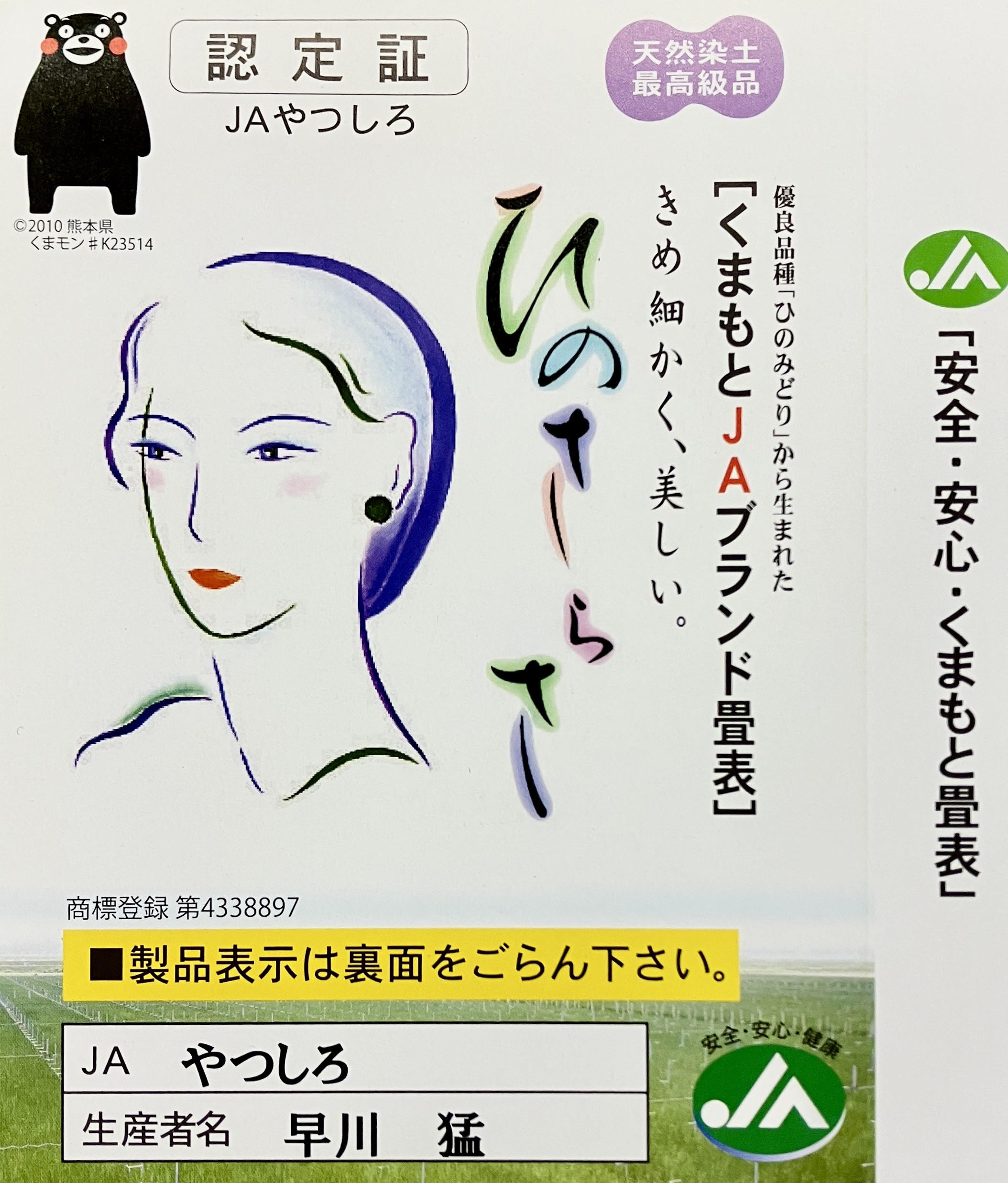 佐藤畳工業では、お届けする全ての畳表に、産地や生産者が明記された「品質証明書」を添えてお渡ししています。
