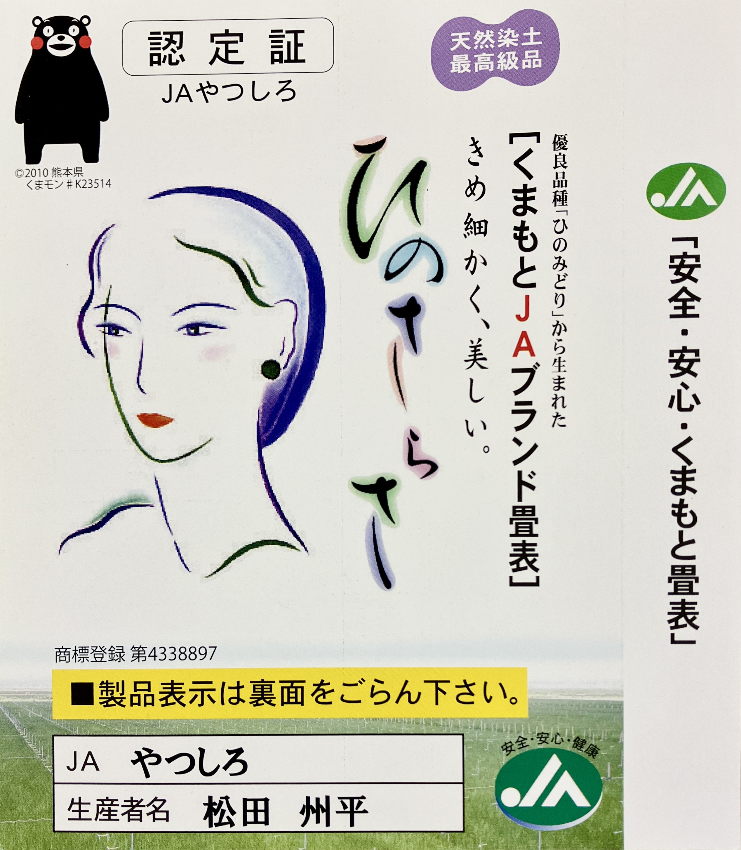 『さらさ(更紗)』の名が示す通り、そのきめ細やかさは抜群です。熊本JAの極めて厳格な選別基準をクリアした「ひのさらさ」の中でも、松田氏のものは草の実入り、織りの精度が群を抜いています。