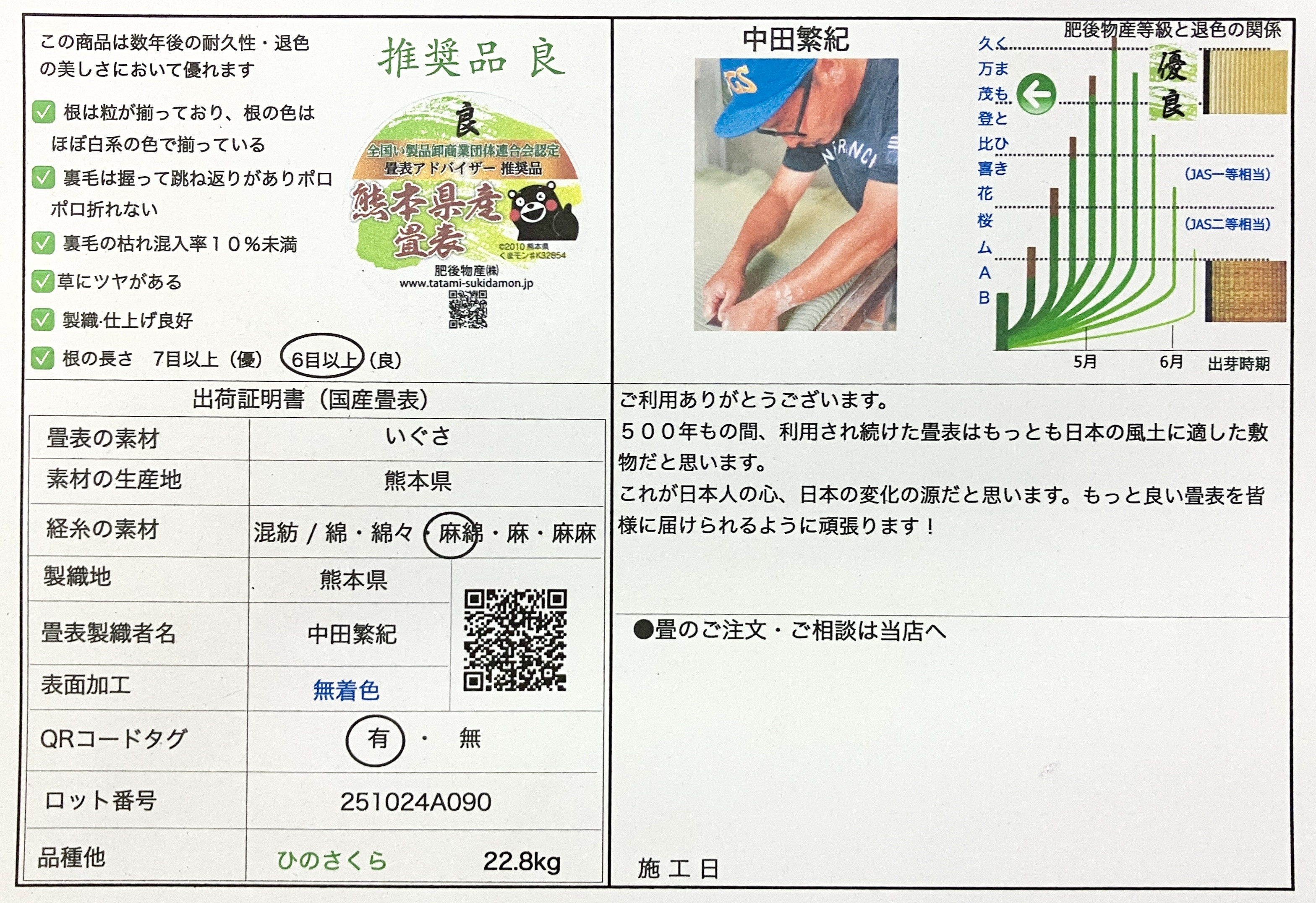 【重要】畳原材料の40%値上げと出荷制限。特選「ひのさくら」80枚限定で旧価格を維持します