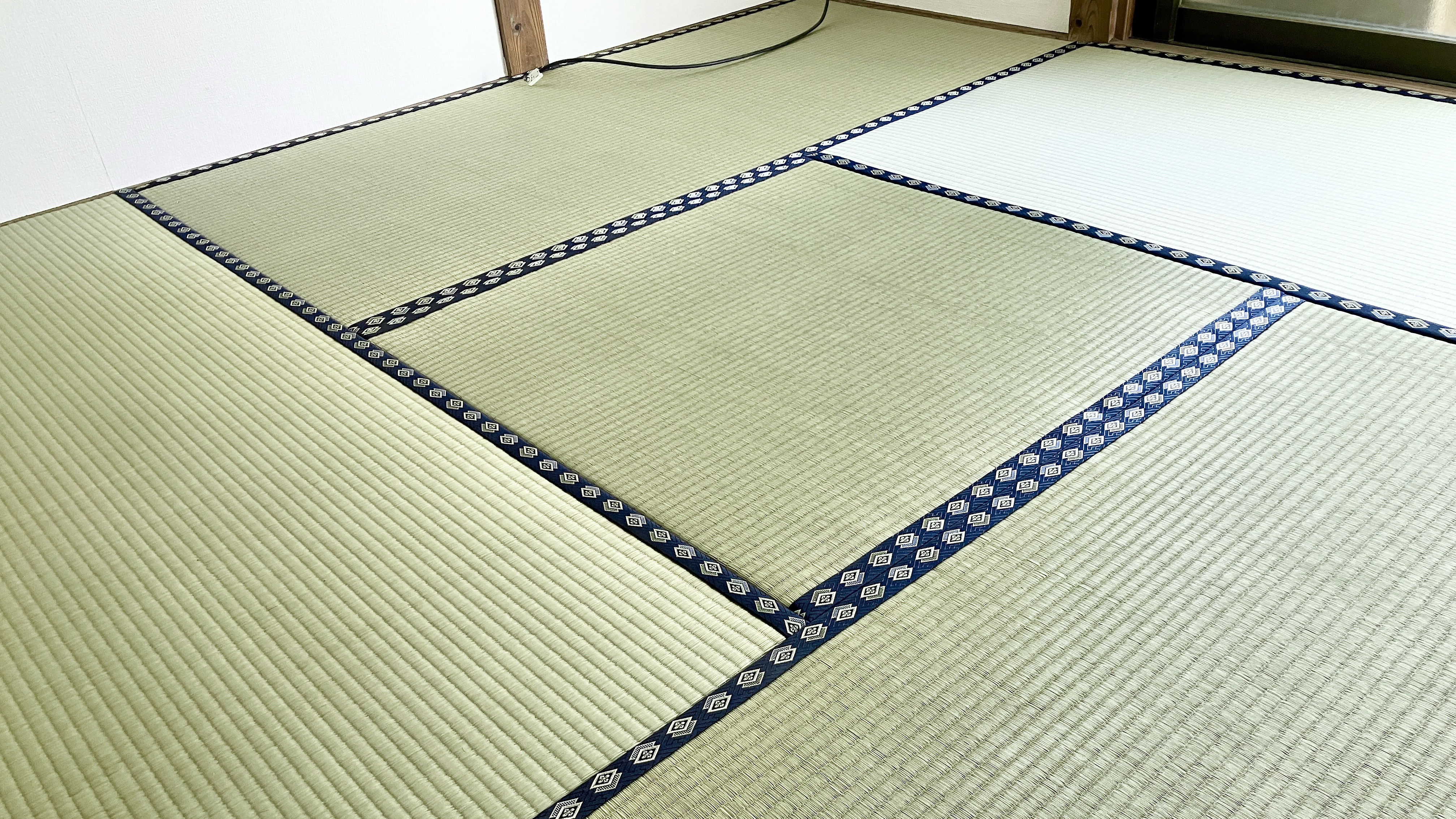 畳表には、熊本県産・岡本氏が手掛ける糸引き「ひのはるか」を使用。合わせる畳縁には、高田織物の『楽壱No.130』を選び、落ち着きのある上品な足元を演出しました。熊本から届いた確かな品質の証が、このお部屋の新しい息吹となります。
