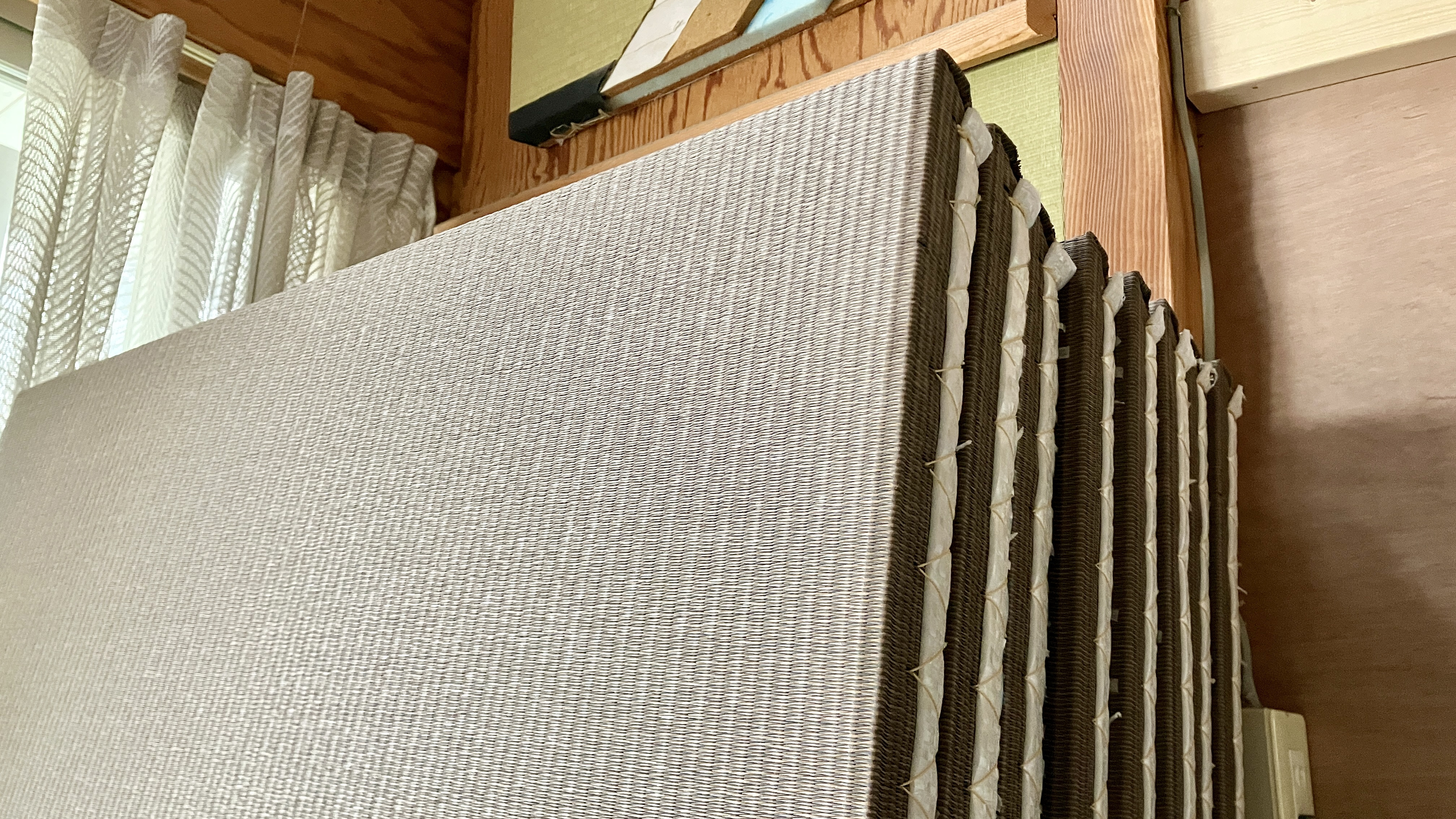 先日、片道72kmの道のりを超えて採寸に伺った草津町のリフォーム現場。製作を進めていた「ダイケン・カクテルフィット」の縁無し畳が無事に完成し、本日納品してまいりました。