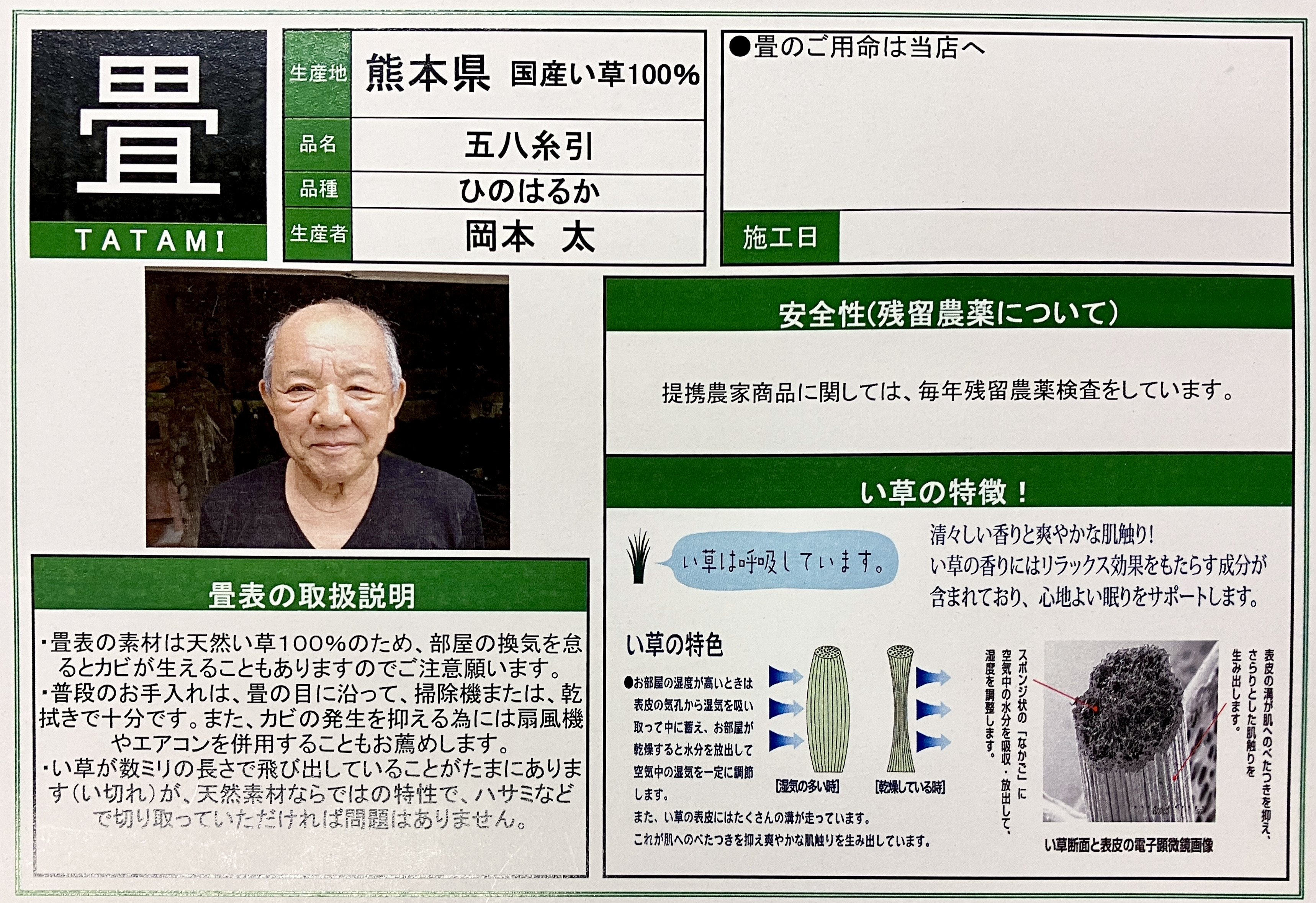 全てのランクの畳表に『出荷品質証明書』が付いています。
